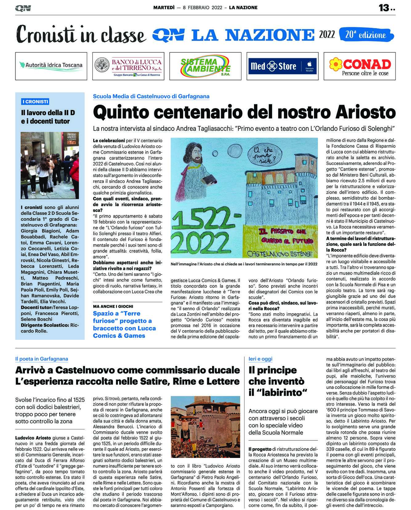 Le celebrazioni per il V centenario della venuta di Ludovico Ariosto come Commissario estense in Garfagnana caratterizzeranno l’intero 2022 di Castelnuovo. Così noi alunni della classe II D abbiamo intervistato sull’argomento in videoconferenza il sindaco Andrea Tagliasacchi, cercando di conoscere anche qualche primizia giornalistica.