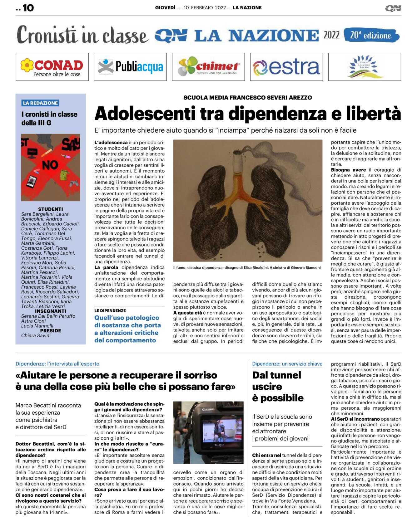 A questa età è normale aver voglia di sperimentare cose nuove, di provare nuove sensazioni, talvolta anche solo per imitare gli altri e non sentirsi inferiori o esclusi dal gruppo. In periodidifficili come quello che stiamo vivendo, ancor di più alcuni giovani pensano di trovare un rifugio in sostanze di cui non percepiscono il pericolo o anche in un uso spropositato e patologico degli smartphone, dei social e, più in generale, della rete. Le conseguenze di queste dipendenze sono davvero terribili, sia fisiche che psicologiche. É im-portante capire che l’unico modo per combattere la tristezza, la delusione o la solitudine, non è cercare di aggirarle ma affrontarle.
