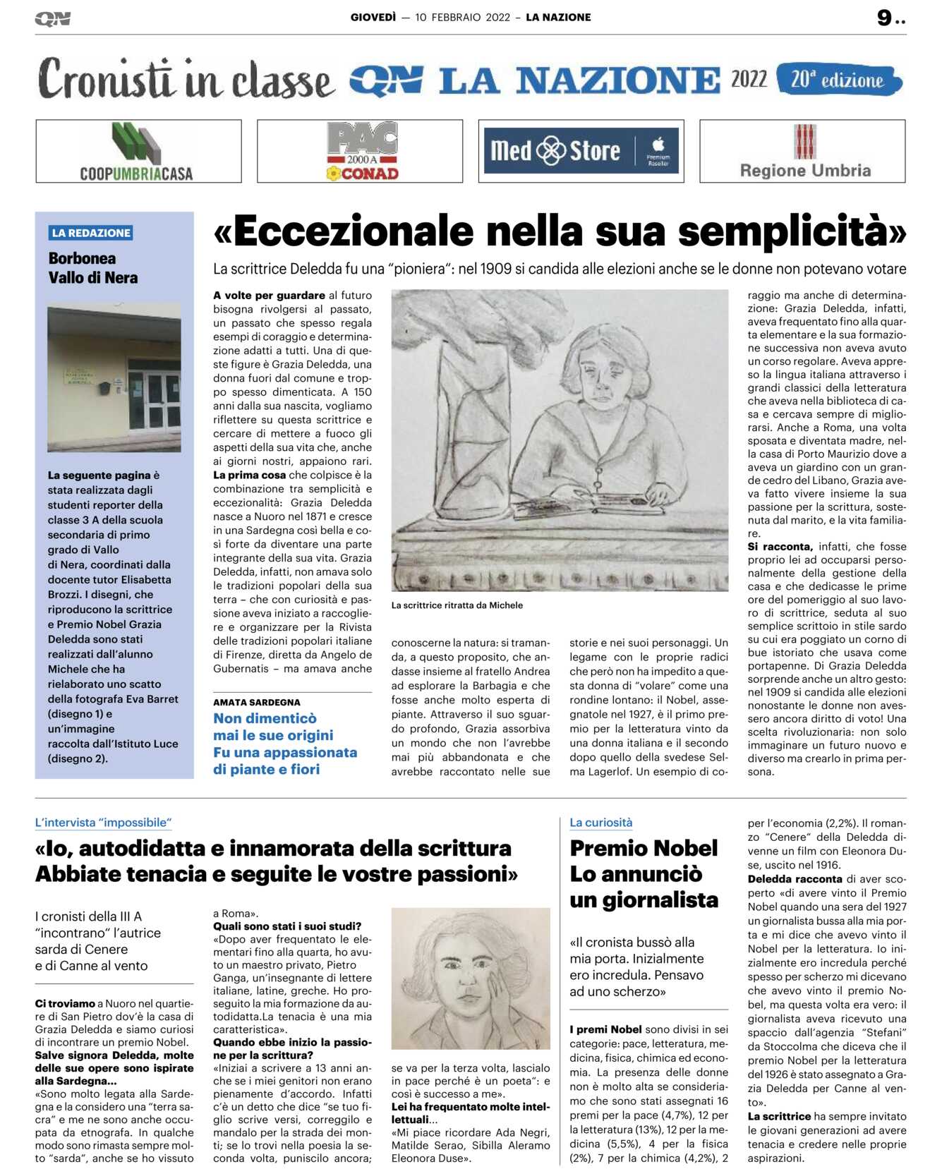 Si racconta, infatti, che fosse proprio lei ad occuparsi personalmente della gestione della casa e che dedicasse le prime ore del pomeriggio al suo lavoro di scrittrice, seduta al suo semplice scrittoio in stile sardo su cui era poggiato un corno di bue istoriato che usava come portapenne. Di Grazia Deledda sorprende anche un altro gesto: nel 1909 si candida alle elezioni nonostante le donne non avessero ancora diritto di voto! Una scelta rivoluzionaria: non solo immaginare un futuro nuovo e diverso ma crearlo in prima persona.
