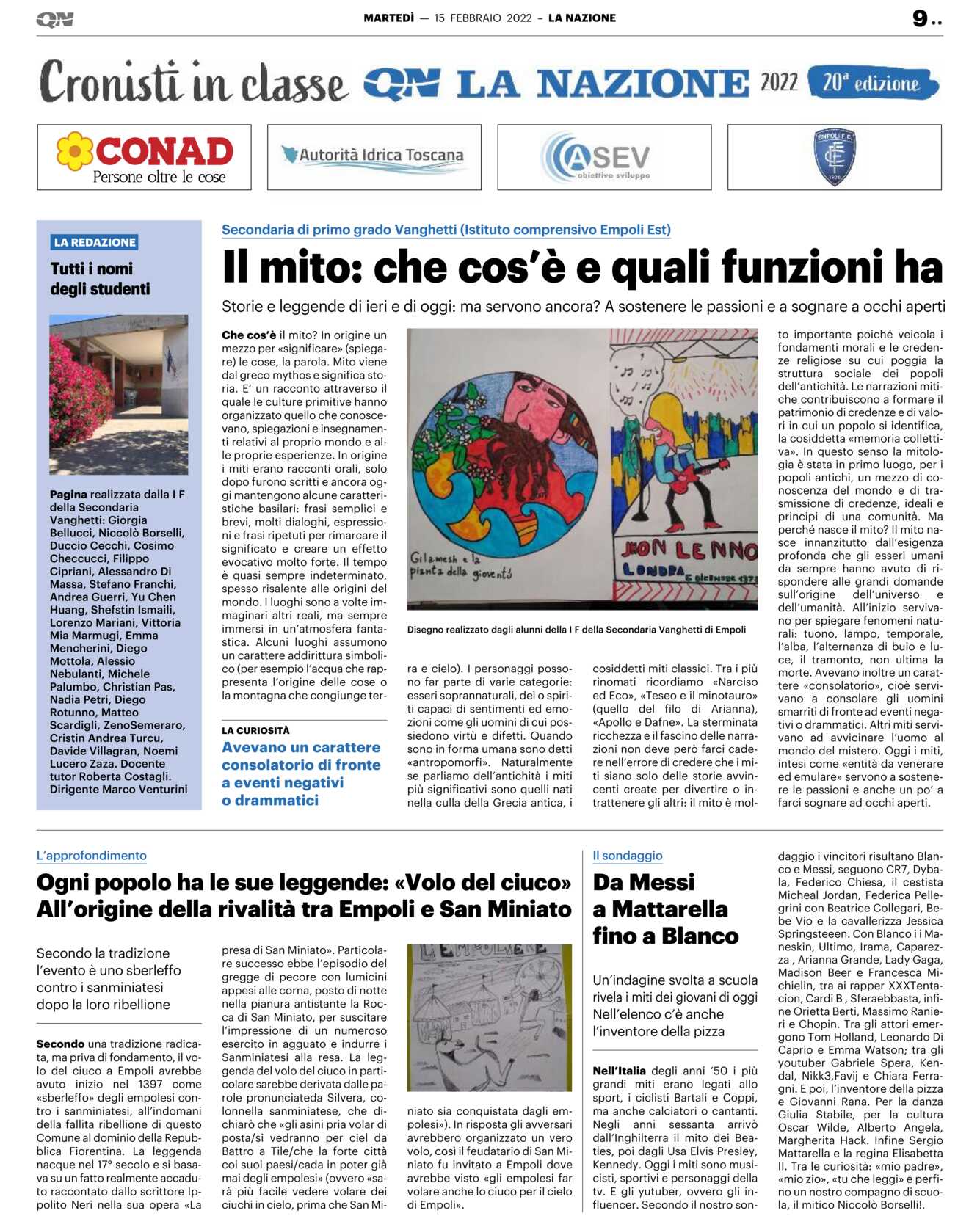 Che cos’è il mito? In origine un mezzo per «significare» (spiegare) le cose, la parola. Mito viene dal greco mythos e significa storia. E’ un racconto attraverso il quale le culture primitive hanno organizzato quello che conoscevano, spiegazioni e insegnamenti relativi al proprio mondo e alle proprie esperienze. In origine i miti erano racconti orali, solo dopo furono scritti e ancora oggi mantengono alcune caratteristiche basilari: frasi semplici e brevi, molti dialoghi, espressioni e frasi ripetuti per rimarcare il significato e creare un effetto evocativo molto forte. Il tempo è quasi sempre indeterminato, spesso risalente alle origini del mondo. I luoghi sono a volte immaginari altri reali, ma sempre immersi in un’atmosfera fantastica. Alcuni luoghi assumono un carattere addirittura simbolico (per esempio l’acqua che rappresenta l’origine delle cose o la montagna che congiunge ter-ra e cielo). I personaggi possono far parte di varie categorie: esseri soprannaturali, dei o spiriti capaci di sentimenti ed emozioni come gli uomini di cui possiedono virtù e difetti. Quando sono in forma umana sono detti «antropomorfi». Naturalmente se parliamo dell’antichità i miti più significativi sono quelli nati nella culla della Grecia antica, icosiddetti miti classici. Tra i più rinomati ricordiamo «Narciso ed Eco», «Teseo e il minotauro» (quello del filo di Arianna), «Apollo e Dafne». La sterminata ricchezza e il fascino delle narrazioni non deve però farci cadere nell’errore di credere che i miti siano solo delle storie avvincenti create per divertire o intrattenere gli altri: il mito è mol-to importante poiché veicola i fondamenti morali e le credenze religiose su cui poggia la strutturasocialedeipopolidell’antichità. Le narrazioni mitiche contribuiscono a formare il patrimonio di credenze e di valori in cui un popolo si identifica, la cosiddetta «memoria collettiva». In questo senso la mitologia è stata in primo luogo, per i popoli antichi, un mezzo di conoscenza del mondo e di trasmissione di credenze, ideali e principi di una comunità. Ma perché nasce il mito? Il mito nasce innanzitutto dall’esigenza profonda che gli esseri umani da sempre hanno avuto di rispondere alle grandi domande sull’originedell’universoedell’umanità. All’inizio servivano per spiegare fenomeni naturali: tuono, lampo, temporale, l’alba, l’alternanza di buio e luce, il tramonto, non ultima la morte. Avevano inoltre un carattere «consolatorio», cioè servivano a consolare gli uomini smarriti di fronte ad eventi negativi o drammatici. Altri miti servivano ad avvicinare l’uomo al mondo del mistero. Oggi i miti, intesi come «entità da venerare ed emulare» servono a sostenere le passioni e anche un po’ a farci sognare ad occhi aperti.