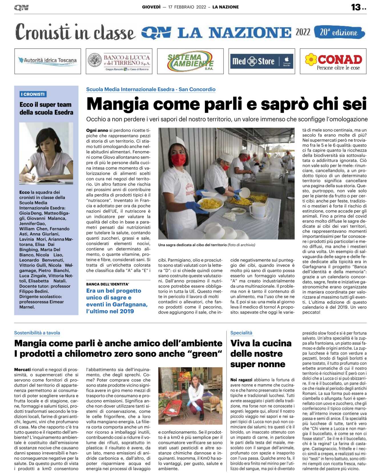 Ogni anno si perdono ricette tipiche che rappresentano pezzi di storia di un territorio. Ci stiamo tutti omologando anche nelle abitudini alimentari. Fenomeni come Glovo allontanano sempre di più le persone dalla cucina intesa come momento di valorizzazione di alimenti scelti con cura nei negozi del territorio. Un altro fattore che rischia nei prossimi anni di contribuire alla perdita di prodotti tipici è il “nutriscore”. Inventato in Francia e adottato per ora da poche nazioni dell’UE, il nutriscore è un indicatore per valutare la qualità del cibo in base a parametri pensati dai nutrizionisti per tutelare la salute, contando quanti zuccheri, grassi e sale, considerati elementi nocivi, contiene un determinato alimento, o quante vitamine, proteine e fibre, considerati sani. Si tratta di un’etichetta colorata che classifica dalla “A” alla “E” i cibi. Parmigiano, olio e prosciutto sono stati valutati con la lettera “D”: ci si chiede quindi come siano costruite queste valutazioni. Dall’anno prossimo il nutriscore potrebbe essere obbligatorio in tutta la UE. Questo mette in pericolo il lavoro di molti contadini o allevatori, che fanno prodotti come il pecorino, dove aggiungono il sale, che incide negativamente sul punteggio dei cibi, quando invece è molto più sano di quanto possa esserlo un formaggio valutato “A” ma creato industrialmente da una multinazionale. Il problema non è tanto il contenuto di un alimento, ma l’uso che se ne fa. E poi si sa: una mela al giorno leva il medico di torno! A proposito: sapevate che oggi le varietà di mele sono centinaia, ma un secolo fa erano molte di più? Nei supermercati però ne troviamo fra le 5 e le 6 qualità: questo ci fa capire quanto la ricchezza della biodiversità sia sottovalutata o addirittura ignorata. Ciò non vale solo per le mele: rinunciare, cancellandolo, a un prodotto tipico di un determinato territorio significa cancellare una pagina della sua storia. Questo, purtroppo, non vale solo per le piante da frutto o per certi cibi: anche per feste, tradizioni o mestieri è forte il rischio di estinzione, come accade per gli animali. Fino a prima del covid erano molto diffuse le sagre dedicate ai cibi dei vari territori, che rappresentavano momenti importantissimi per far conoscere i prodotti più particolari e meno diffusi, ma anche i mestieri di una volta. Un esempio di salvaguardia delle sagre e delle feste dedicate alla tipicità era in Garfagnana il progetto “Banca dell’identità e della memoria”: grazie a un calendario concordato, sagre, feste e iniziative gastronomiche erano organizzate in maniera coordinata per valorizzare al massimo tutti gli eventi. L’ultima edizione di questo calendario è del 2019. Un vero peccato!