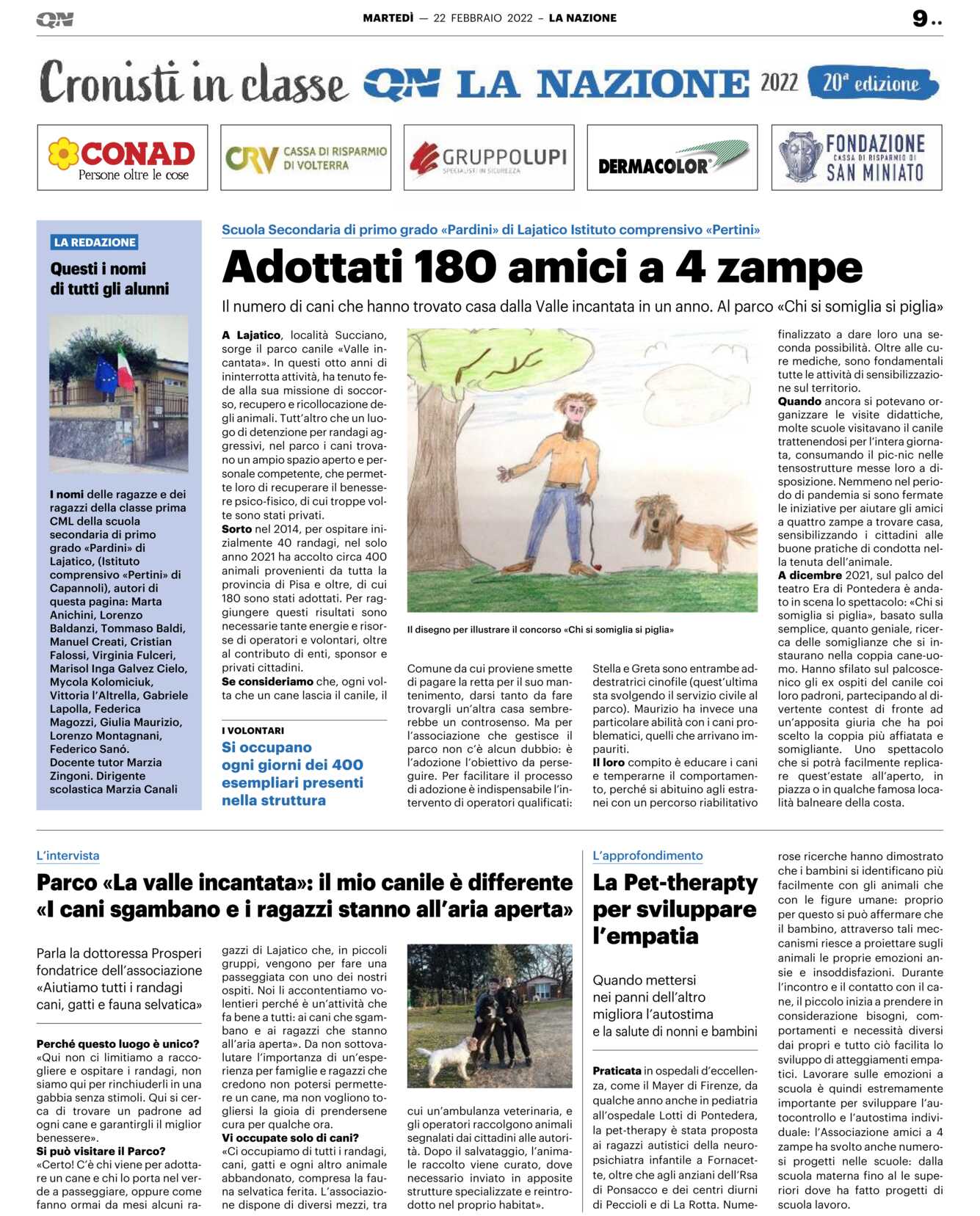 A Lajatico, località Succiano, sorge il parco canile «Valle incantata». In questi otto anni di ininterrotta attività, ha tenuto fede alla sua missione di soccorso, recupero e ricollocazione degli animali. Tutt’altro che un luogo di detenzione per randagi aggressivi, nel parco i cani trovano un ampio spazio aperto e personale competente, che permette loro di recuperare il benessere psico-fisico, di cui troppe volte sono stati privati.