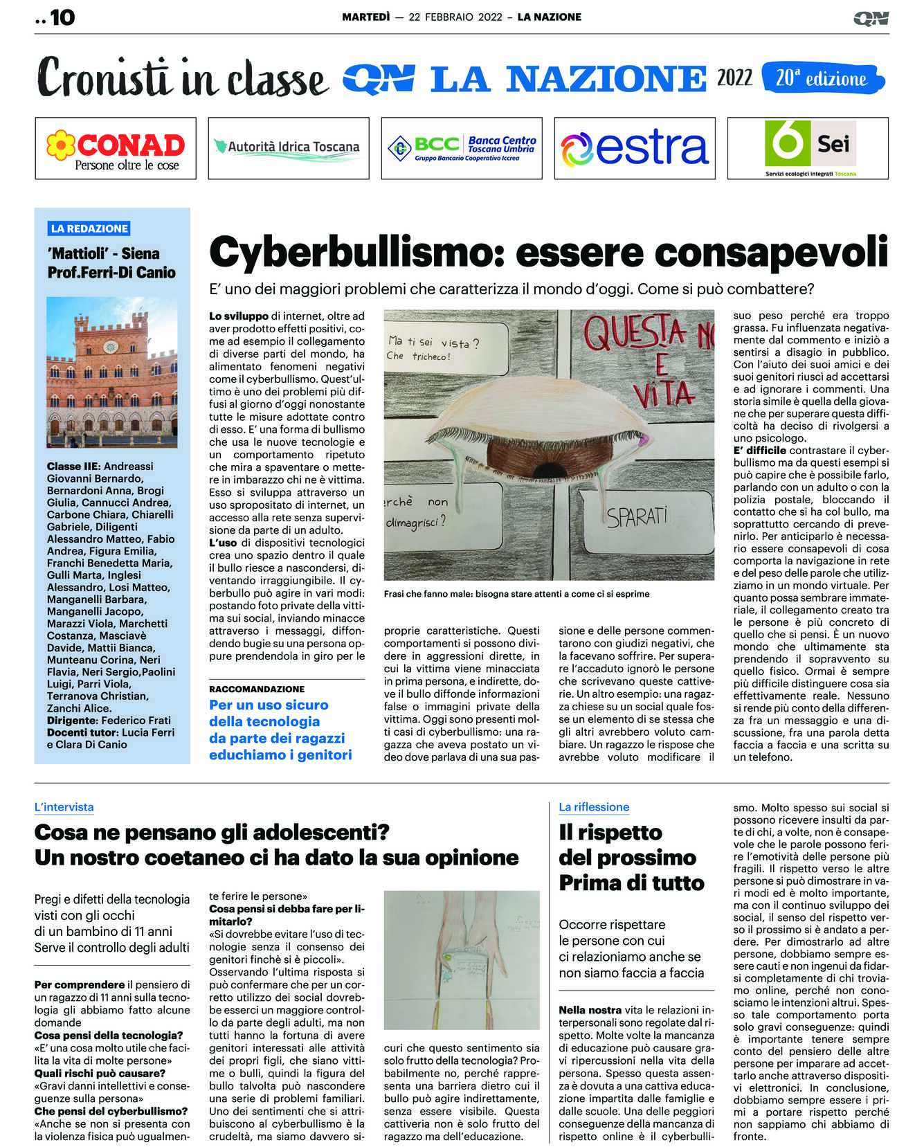 Lo sviluppo di internet, oltre ad aver prodotto effetti positivi, come ad esempio il collegamento di diverse parti del mondo, ha alimentato fenomeni negativi come il cyberbullismo. Quest’ultimo è uno dei problemi più diffusi al giorno d’oggi nonostante tutte le misure adottate contro di esso. E’ una forma di bullismo che usa le nuove tecnologie e un comportamento ripetuto che mira a spaventare o mettere in imbarazzo chi ne è vittima.