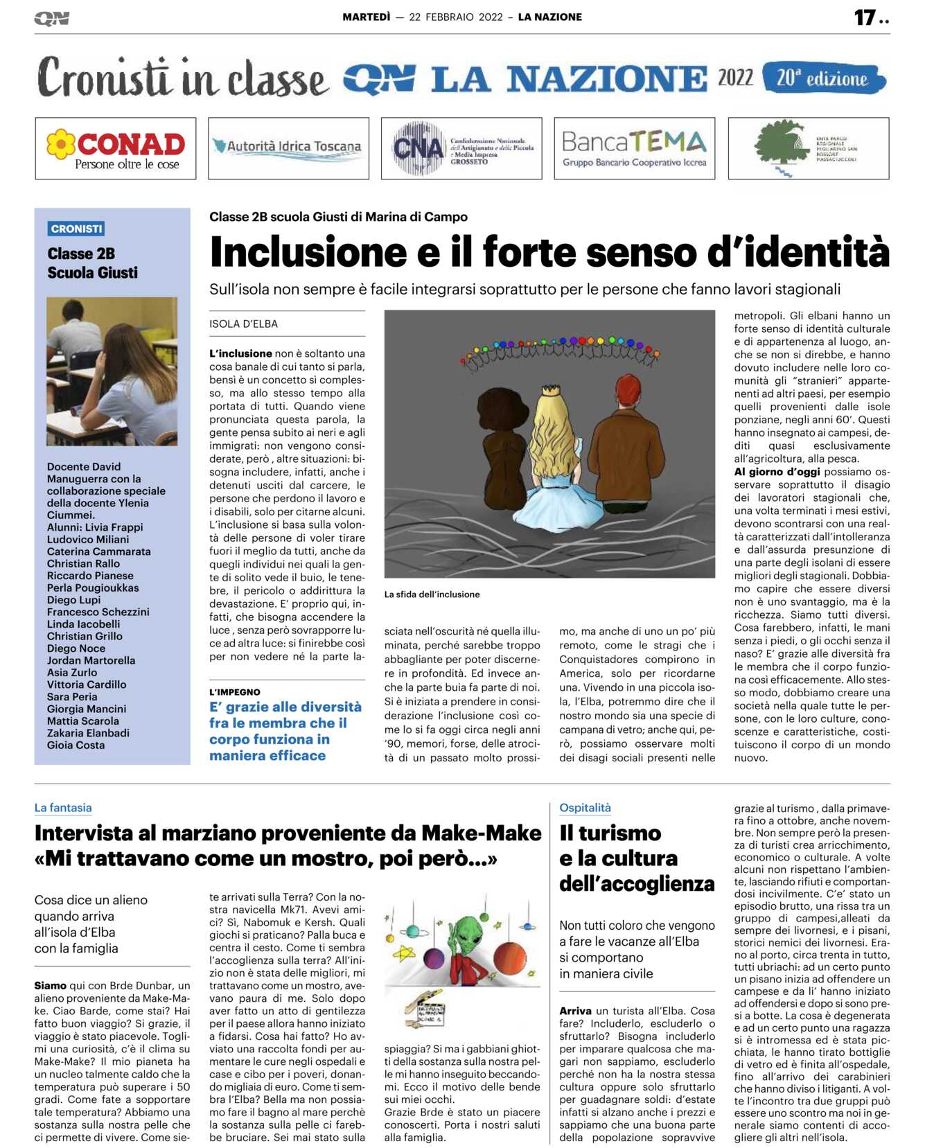 ISOLA D’ELBA L’inclusione non è soltanto una cosa banale di cui tanto si parla, bensì è un concetto sì complesso, ma allo stesso tempo alla portata di tutti. Quando viene pronunciata questa parola, la gente pensa subito ai neri e agli immigrati: non vengono considerate, però , altre situazioni: bisogna includere, infatti, anche i detenuti usciti dal carcere, le persone che perdono il lavoro e i disabili, solo per citarne alcuni.