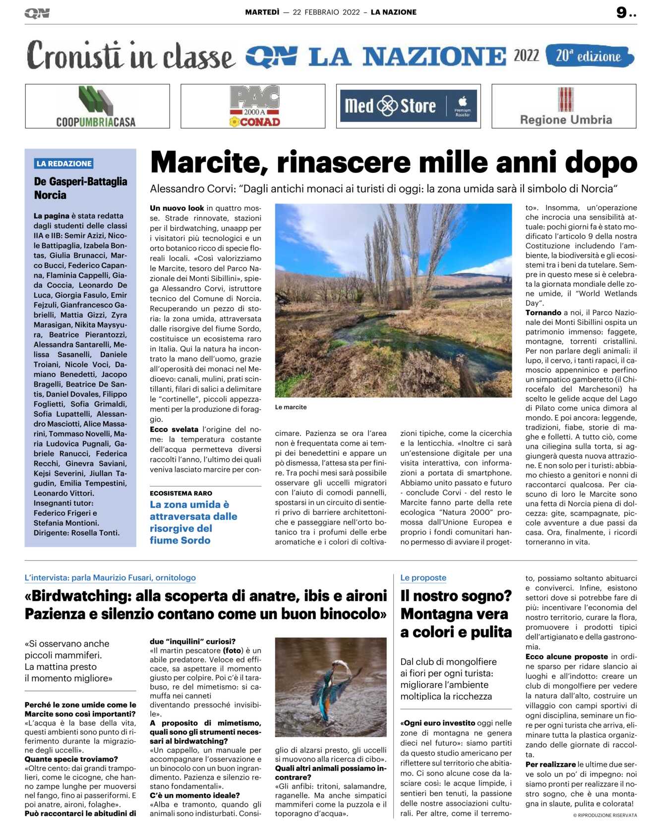 Abbiamo unito passato e futuro – conclude Corvi – del resto le Marcite fanno parte della rete ecologica “Natura 2000“ promossa dall’Unione Europea e proprio i fondi comunitari hanno permesso di avviare il progetto». Insomma, un’operazione che incrocia una sensibilità attuale: pochi giorni fa è stato modificato l’articolo 9 della nostra Costituzione includendo l’ambiente, la biodiversità e gli ecosistemi tra i beni da tutelare. Sempre in questo mese si è celebrata la giornata mondiale delle zone umide, il “World Wetlands Day“.