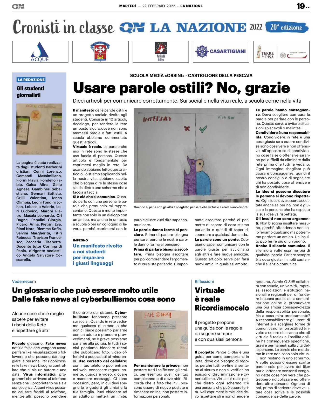 Il manifesto delle parole ostili è un progetto sociale rivolto agli studenti. Consiste in 10 articoli, decalogo, per rendere la rete un posto sicuro, dove non sono ammessi parole o fatti ostili. A scuola abbiamo commentato questi articoli.