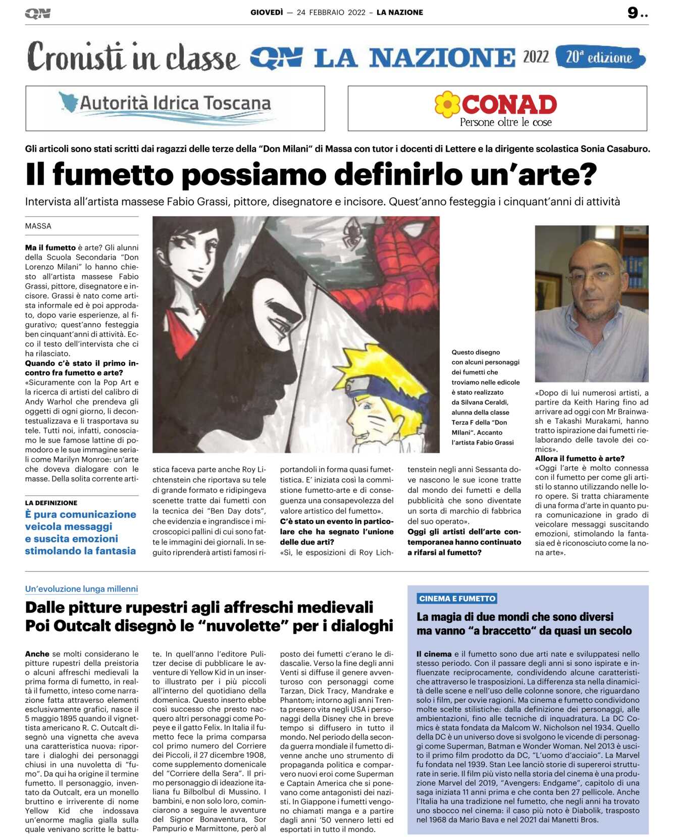 MASSA Ma il fumetto è arte? Gli alunni della Scuola Secondaria “Don Lorenzo Milani” lo hanno chiesto all’artista massese Fabio Grassi, pittore, disegnatore e incisore. Grassi è nato come artista informale ed è poi approdato, dopo varie esperienze, al figurativo; quest’anno festeggia ben cinquant’anni di attività. Ecco il testo dell’intervista che ci ha rilasciato.