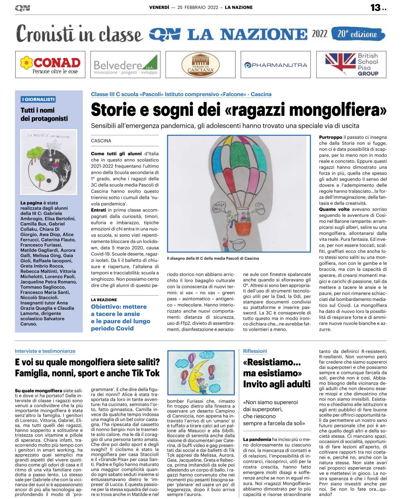 CASCINA Come tutti gli alunni d’Italia che in questo anno scolastico 2021-2022 frequentano l’ultimo anno della Scuola secondaria di 1° grado, anche i ragazzi della 3C della scuola media Pascoli di Cascina hanno svolto questo triennio sotto i cumuli della ’nuvola pandemica’.