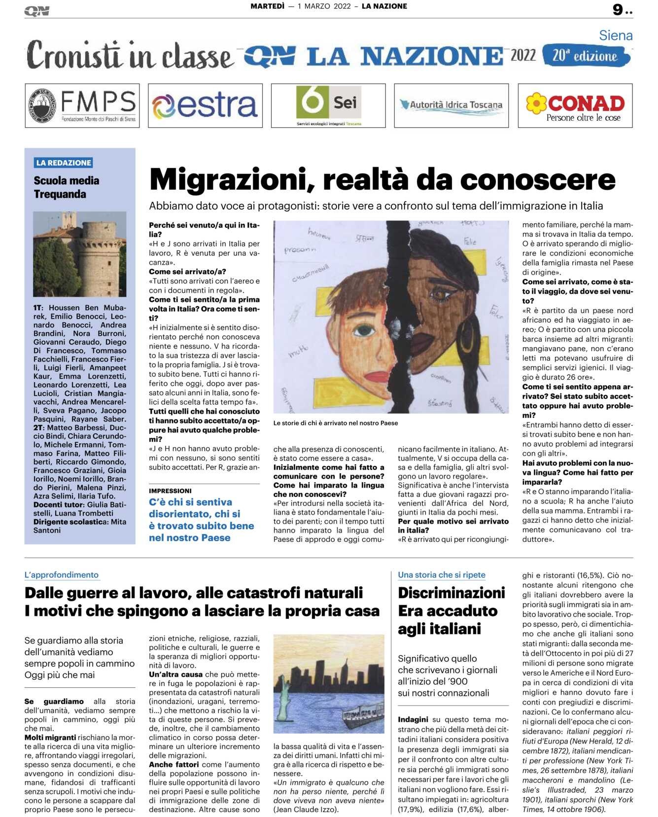 Significativa è anche l’intervista fatta a due giovani ragazzi provenienti dall’Africa del Nord, giunti in Italia da pochi mesi. Per quale motivo sei arrivato in Italia? «R è arrivato qui per ricongiungimento familiare, perché la mamma si trovava in Italia da tempo. O è arrivato sperando di migliorare le condizioni economiche della famiglia rimasta nel Paese di origine».