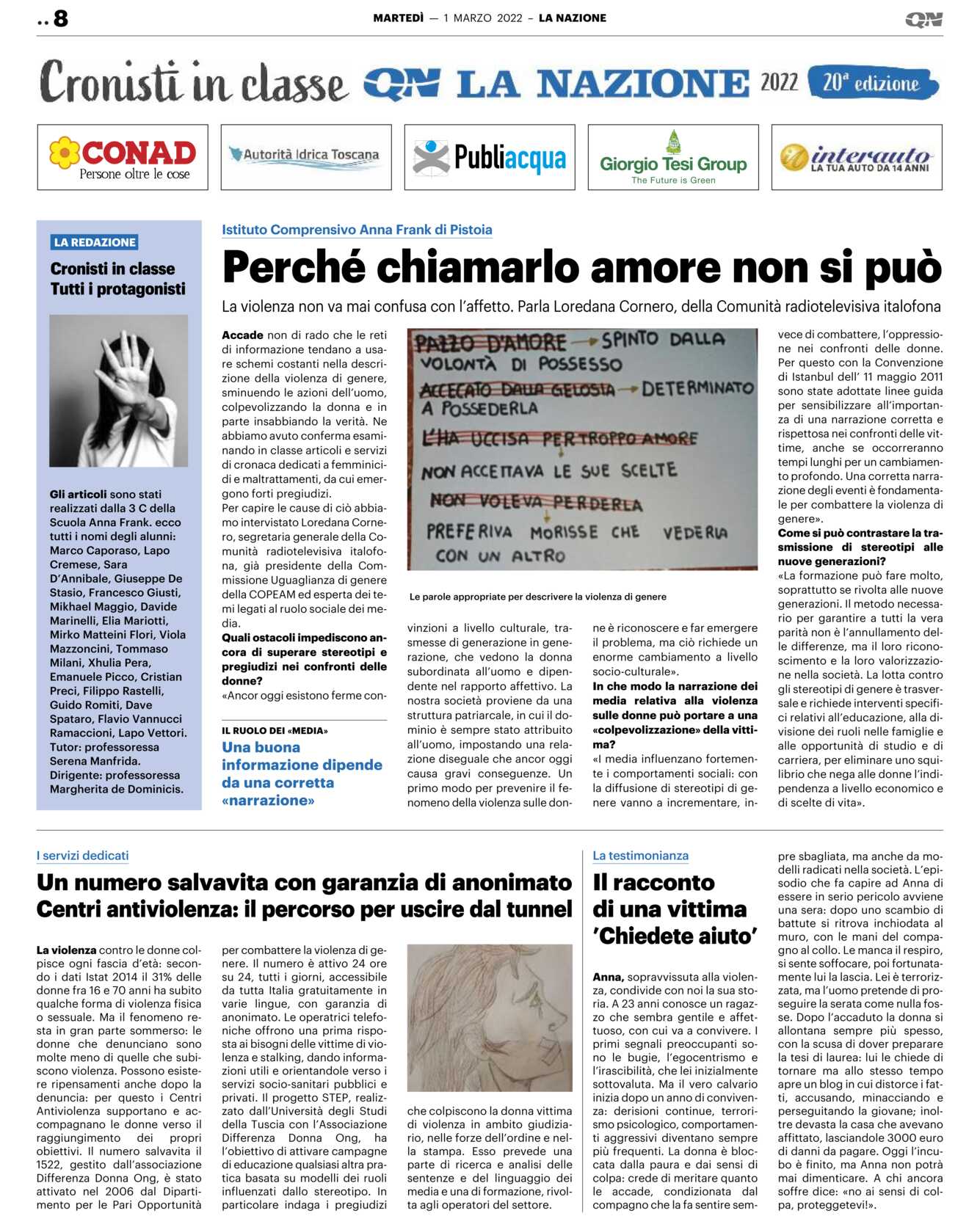 Accade non di rado che le reti di informazione tendano a usare schemi costanti nella descrizione della violenza di genere, sminuendo le azioni dell’uomo, colpevolizzando la donna e in parte insabbiando la verità. Ne abbiamo avuto conferma esaminando in classe articoli e servizi di cronaca dedicati a femminicidi e maltrattamenti, da cui emergono forti pregiudizi.
