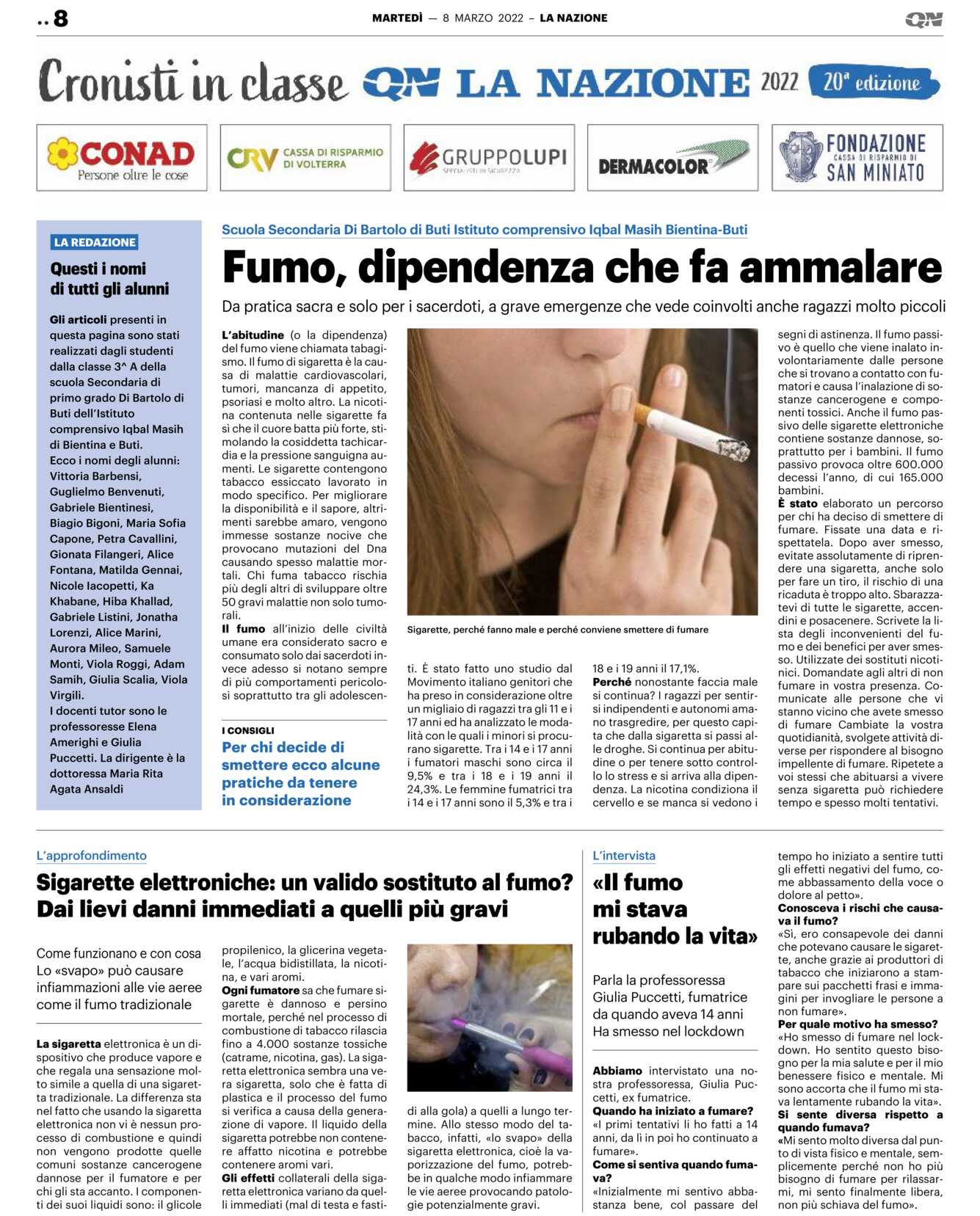 Perché nonostante faccia male si continua? I ragazzi per sentirsi indipendenti e autonomi amano trasgredire, per questo capita che dalla sigaretta si passi alle droghe. Si continua per abitudine o per tenere sotto controllo lo stress e si arriva alla dipendenza. La nicotina condiziona il cervello e se manca si vedono i segni di astinenza. Il fumo passivo è quello che viene inalato involontariamente dalle persone che si trovano a contatto con fumatori e causa l’inalazione di sostanze cancerogene e componenti tossici. Anche il fumo passivo delle sigarette elettroniche contiene sostanze dannose, soprattutto per i bambini. Il fumo passivo provoca oltre 600.000 decessi l’anno, di cui 165.000 bambini.