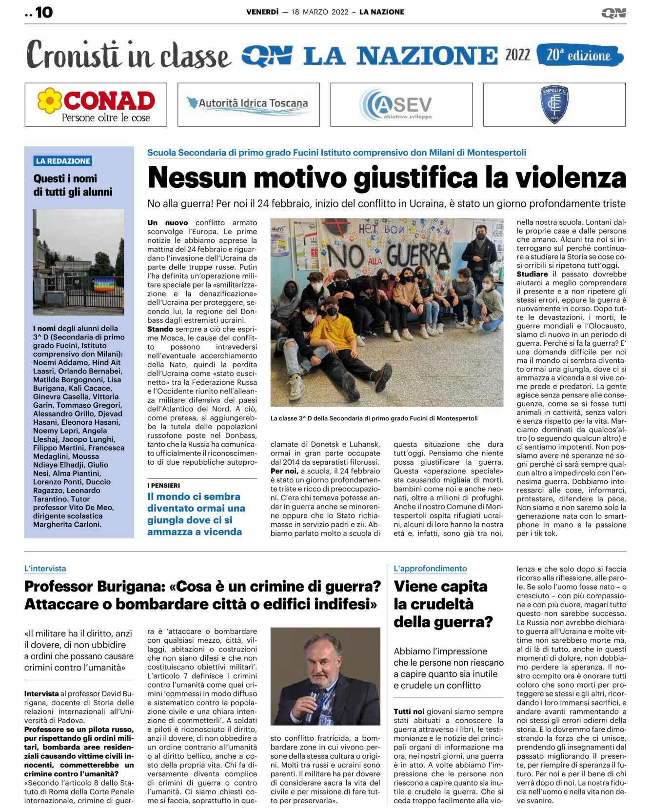 Anche il nostro Comune di Montespertoli ospita rifugiati ucraini, alcuni di loro hanno la nostra età e, infatti, sono già tra noi, nella nostra scuola. Lontani dalle proprie case e dalle persone che amano. Alcuni tra noi si interrogano sul perché continuare a studiare la Storia se cose così orribili si ripetono tutt’oggi.