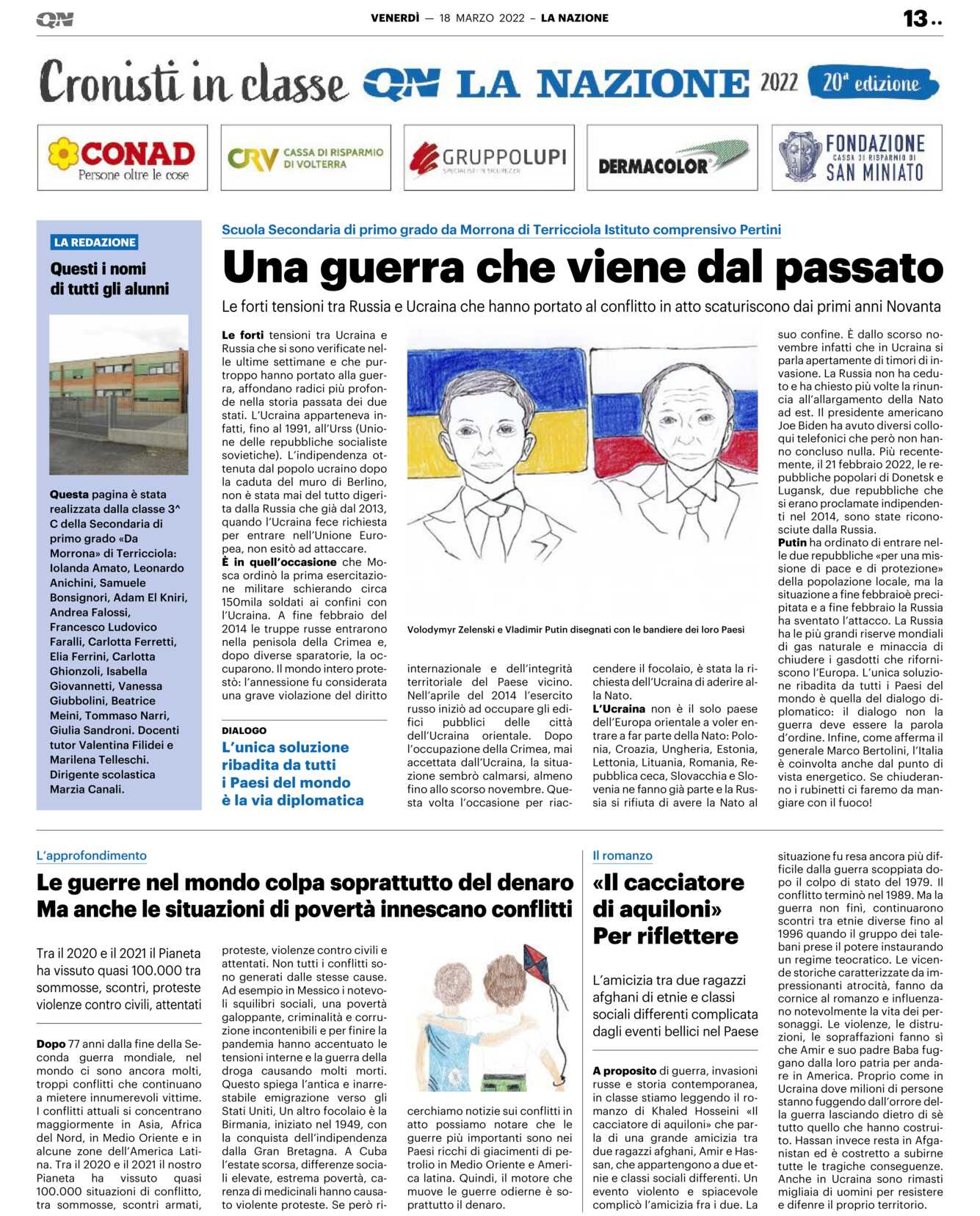 Putin ha ordinato di entrare nelle due repubbliche «per una missione di pace e di protezione» della popolazione locale, ma la situazione a fine febbraio è precipitata e a fine febbraio la Russia ha sventato l’attacco. La Russia ha le più grandi riserve mondiali di gas naturale e minaccia di chiudere i gasdotti che riforniscono l’Europa. L’unica soluzione ribadita da tutti i Paesi del mondo è quella del dialogo diplomatico: il dialogo non la guerra deve essere la parola d’ordine. Infine, come afferma il generale Marco Bertolini, l’Italia è coinvolta anche dal punto di vista energetico. Se chiuderanno i rubinetti ci faremo da mangiare con il fuoco!