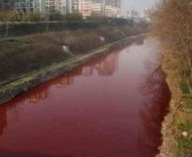 Anche quello che una volta era il fiume Azzurro, adesso si è colorato di rosso. E non si tratta di una colorazione naturale o miracolosa. E’ la conseguenza di scarichi inquinanti.