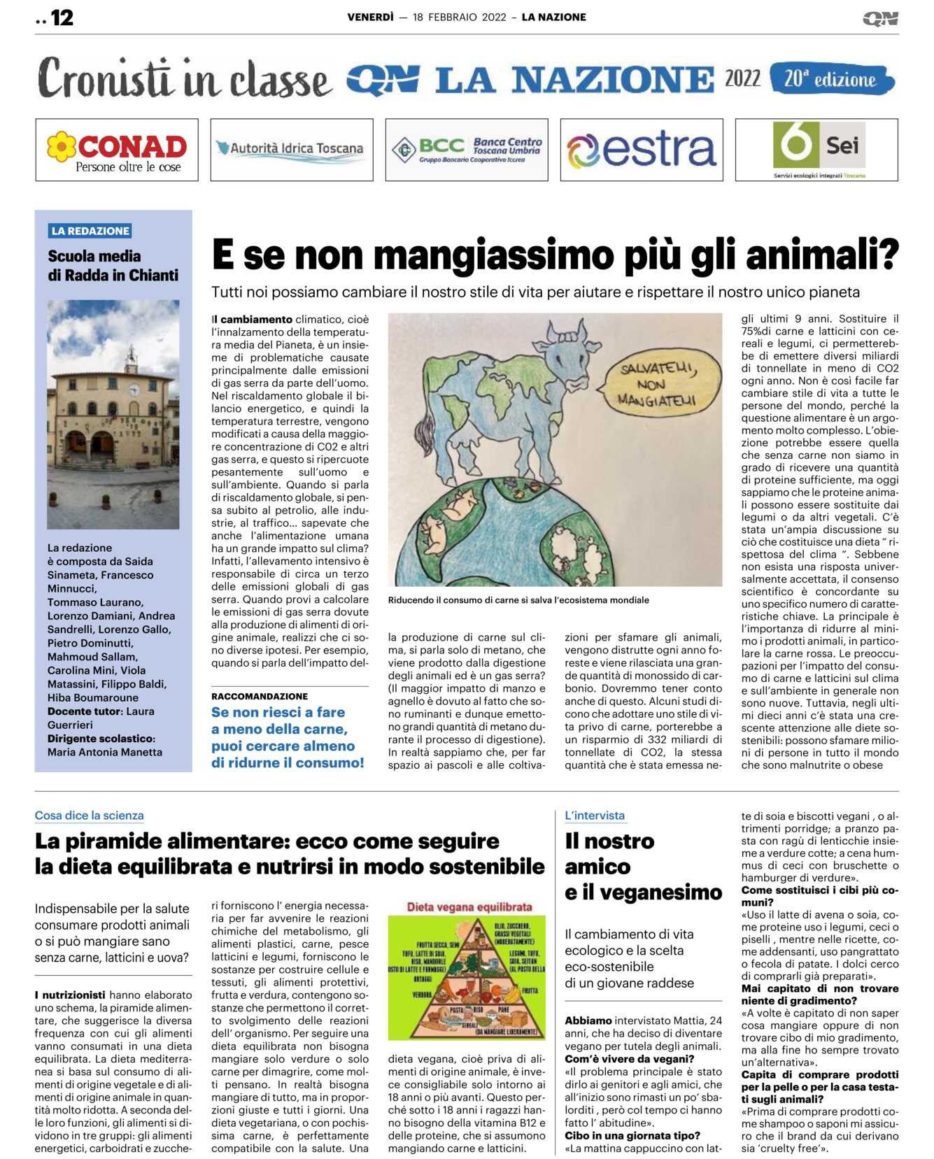 In realtà sappiamo che, per far spazio ai pascoli e alle coltiva-zioni per sfamare gli animali, vengono distrutte ogni anno foreste e viene rilasciata una grande quantità di monossido di carbonio. Dovremmo tener conto anche di questo. Alcuni studi dicono che adottare uno stile di vita privo di carne, porterebbe a un risparmio di 332 miliardi di tonnellate di CO2, la stessa quantità che è stata emessa ne-gli ultimi 9 anni. Sostituire il 75%di carne e latticini con cereali e legumi, ci permetterebbe di emettere diversi miliardi di tonnellate in meno di CO2 ogni anno. Non è così facile far cambiare stile di vita a tutte le persone del mondo, perché la questione alimentare è un argomento molto complesso. L’obiezione potrebbe essere quella che senza carne non siamo in grado di ricevere una quantità di proteine sufficiente, ma oggi sappiamo che le proteine animali possono essere sostituite dai legumi o da altri vegetali. C’è stata un’ampia discussione su ciò che costituisce una dieta “ rispettosa del clima “. Sebbene non esista una risposta universalmente accettata, il consenso scientifico è concordante su uno specifico numero di caratteristiche chiave. La principale è l’importanza di ridurre al minimo i prodotti animali, in particolare la carne rossa. Le preoccupazioni per l’impatto del consumo di carne e latticini sul clima e sull’ambiente in generale non sono nuove. Tuttavia, negli ultimi dieci anni c’è stata una crescente attenzione alle diete sostenibili: possono sfamare milioni di persone in tutto il mondo che sono malnutrite o obese.