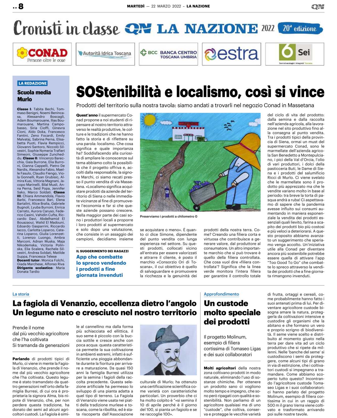 Quest’anno il supermercato Conad propone a noi studenti di ripensare al nostro territorio attraverso le realtà produttive, le colture e le tradizioni che ne hanno fatto la storia e di riflettere su una parola: localismo. Che cosa significa e quale importanza ha? Soddisfacendo alla curiosità di ampliare le conoscenze sul tema abbiamo colto la possibilità che il progetto offriva e, accolti dalla responsabile, la signora Marchi, ci siamo recati presso il punto vendita di via Massetana. «Localismo significa acquistare prodotti da aziende del territorio di Siena o nelle immediate vicinanze al fine di promuovere l’economia e far sì che queste aziende possano crescere.