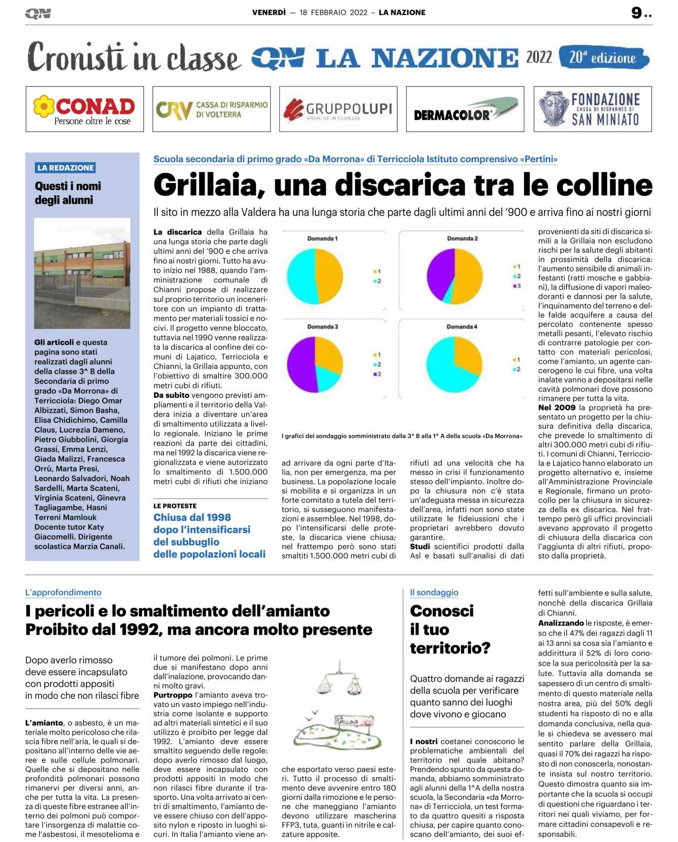 La discarica della Grillaia ha una lunga storia che parte dagli ultimi anni del ‘900 e che arriva fino ai nostri giorni. Tutto ha avuto inizio nel 1988, quando l’amministrazione comunale di Chianni propose di realizzare sul proprio territorio un inceneritore con un impianto di trattamento per materiali tossici e nocivi. Il progetto venne bloccato, tuttavia nel 1990 venne realizzata la discarica al confine dei comuni di Lajatico, Terricciola e Chianni, la Grillaia appunto, con l’obiettivo di smaltire 300.000 metri cubi di rifiuti.