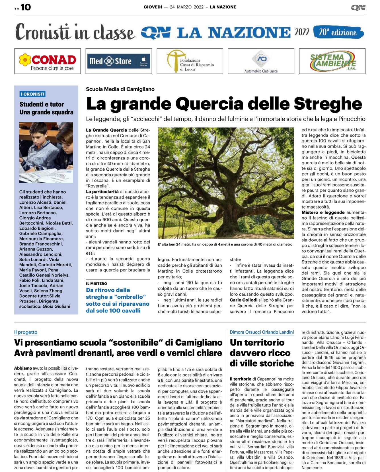 Carlo Collodi si ispirò alla Grande Quercia delle Streghe per scrivere il romanzo Pinocchio ed è qui che fu impiccato. Un’altra leggenda dice che sotto la quercia 100 cavalli si rifugiarono nella sua ombra. Si può raggiungere a piedi, in bicicletta ma anche in macchina. Questa quercia è molto bella sia di notte sia di giorno. Uno spettacolo per gli occhi, è un buon posto per: un picnic, un incontro, una gita. I suoi rami possono suscitare paura per quanto siano grandi. Adoro il quercione e vorrei mostrare a tutti la sua imponente maestosità.
