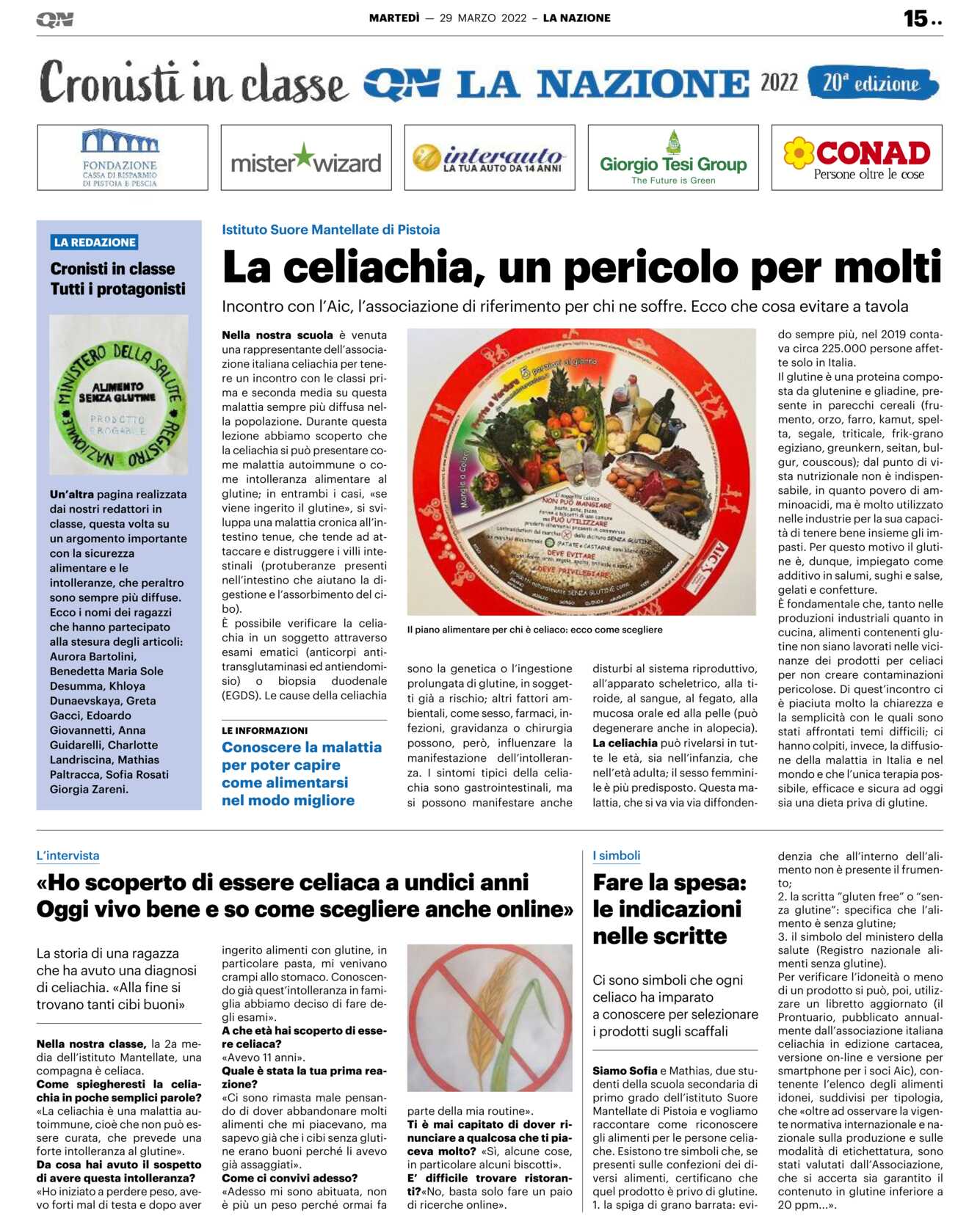 Nella nostra scuola è venuta una rappresentante dell’associazione italiana celiachia per tenere un incontro con le classi prima e seconda media su questa malattia sempre più diffusa nella popolazione. Durante questa lezione abbiamo scoperto che la celiachia si può presentare come malattia autoimmune o come intolleranza alimentare al glutine; in entrambi i casi, «se viene ingerito il glutine», si sviluppa una malattia cronica all’intestino tenue, che tende ad attaccare e distruggere i villi intestinali (protuberanze presenti nell’intestino che aiutano la digestione e l’assorbimento del cibo).