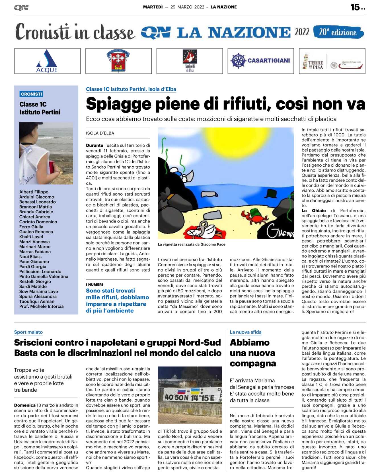 Questa esperienza, bella alla fine, ci ha fatto rendere conto delle condizioni del mondo in cui viviamo. Abbiamo scritto e contato la sporcizia di piccola misura che danneggia il nostro ambiente.