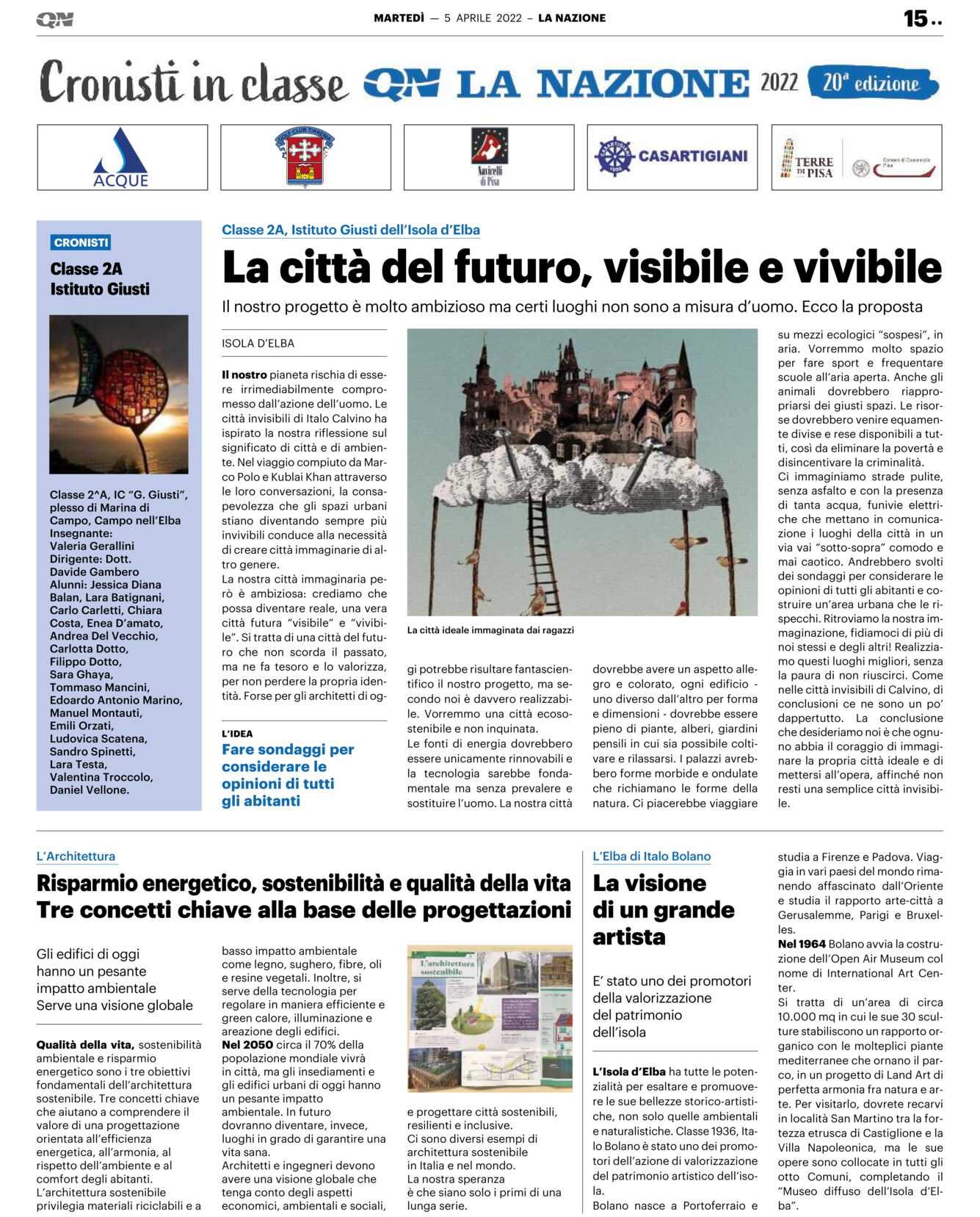 ISOLA D’ELBA Il nostro pianeta rischia di essere irrimediabilmente compromesso dall’azione dell’uomo. Le città invisibili di Italo Calvino ha ispirato la nostra riflessione sul significato di città e di ambiente. Nel viaggio compiuto da Marco Polo e Kublai Khan attraverso le loro conversazioni, la consapevolezza che gli spazi urbani stiano diventando sempre più invivibili conduce alla necessità di creare città immaginarie di altro genere.