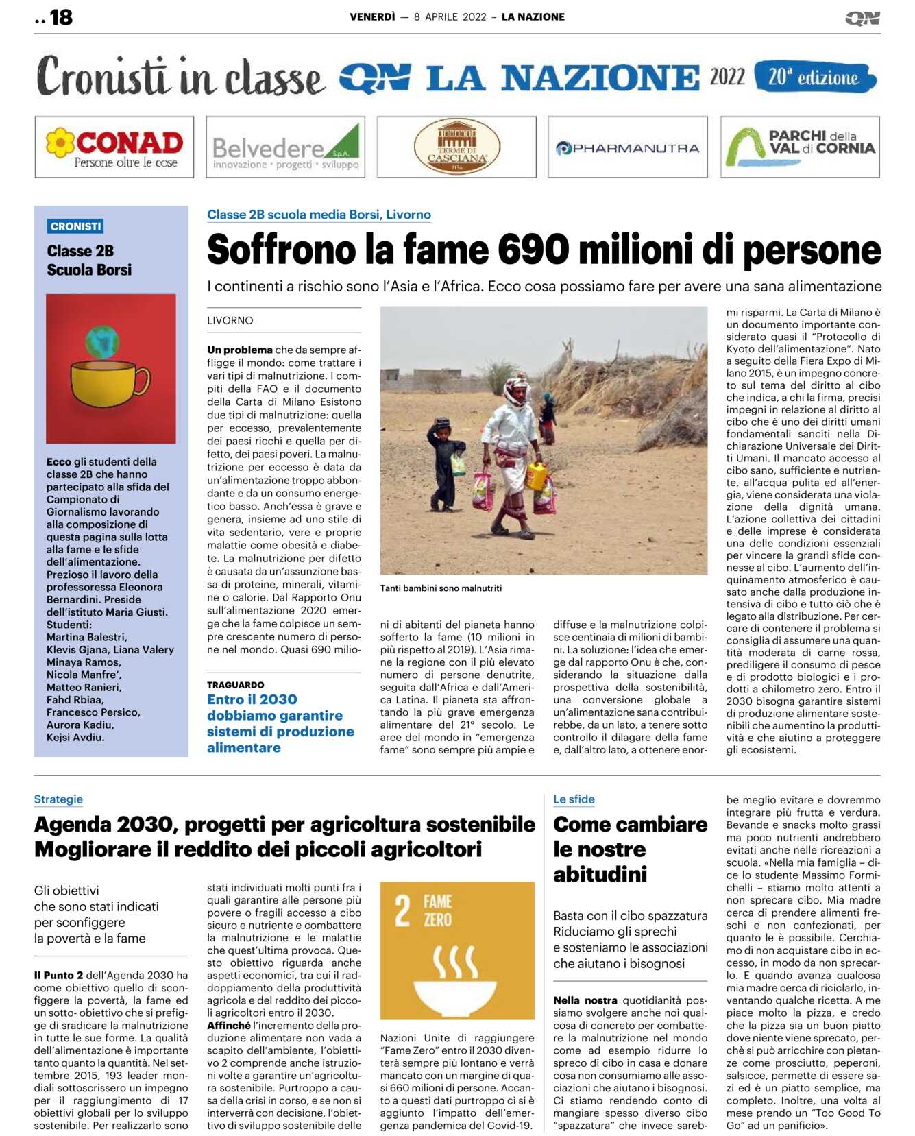 LIVORNO Un problema che da sempre affligge il mondo: come trattare i vari tipi di malnutrizione. I compiti della FAO e il documento della Carta di Milano Esistono due tipi di malnutrizione: quella per eccesso, prevalentemente dei paesi ricchi e quella per difetto, dei paesi poveri. La malnutrizione per eccesso è data da un’alimentazione troppo abbondante e da un consumo energetico basso. Anch’essa è grave e genera, insieme ad uno stile di vita sedentario, vere e proprie malattie come obesità e diabete. La malnutrizione per difetto è causata da un’assunzione bassa di proteine, minerali, vitamine o calorie. Dal Rapporto Onu sull’alimentazione 2020 emerge che la fame colpisce un sempre crescente numero di persone nel mondo. Quasi 690 milio-ni di abitanti del pianeta hanno sofferto la fame (10 milioni in più rispetto al 2019). L’Asia rimane la regione con il più elevato numero di persone denutrite, seguita dall’Africa e dall’America Latina. Il pianeta sta affrontando la più grave emergenza alimentare del 21° secolo. Le aree del mondo in “emergenza fame” sono sempre più ampie e diffuse e la malnutrizione colpisce centinaia di milioni di bambini. La soluzione: l’idea che emerge dal rapporto Onu è che, considerando la situazione dalla prospettiva della sostenibilità, una conversione globale a un’alimentazione sana contribuirebbe, da un lato, a tenere sotto controllo il dilagare della fame e, dall’altro lato, a ottenere enormi risparmi. La Carta di Milano è un documento importante considerato quasi il “Protocollo di Kyoto dell’alimentazione”. Nato a seguito della Fiera Expo di Milano 2015, è un impegno concreto sul tema del diritto al cibo che indica, a chi la firma, precisi impegni in relazione al diritto al cibo che è uno dei diritti umani fondamentali sanciti nella Dichiarazione Universale dei Diritti Umani. Il mancato accesso al cibo sano, sufficiente e nutriente, all’acqua pulita ed all’energia, viene considerata una violazione della dignità umana. L’azione collettiva dei cittadini e delle imprese è considerata una delle condizioni essenziali per vincere la grandi sfide connesse al cibo. L’aumento dell’inquinamento atmosferico è causato anche dalla produzione intensiva di cibo e tutto ciò che è legato alla distribuzione. Per cercare di contenere il problema si consiglia di assumere una quantità moderata di carne rossa, prediligere il consumo di pesce e di prodotto biologici e i prodotti a chilometro zero. Entro il 2030 bisogna garantire sistemi di produzione alimentare sostenibili che aumentino la produttività e che aiutino a proteggere gli ecosistemi.