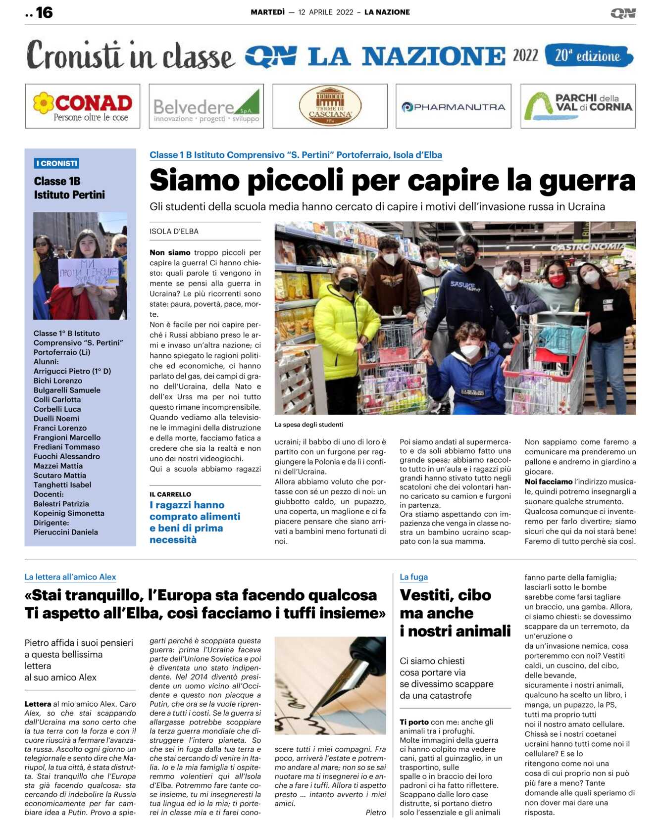 Qui a scuola abbiamo ragazzi ucraini; il babbo di uno di loro è partito con un furgone per raggiungere la Polonia e da lì i confini dell’Ucraina.