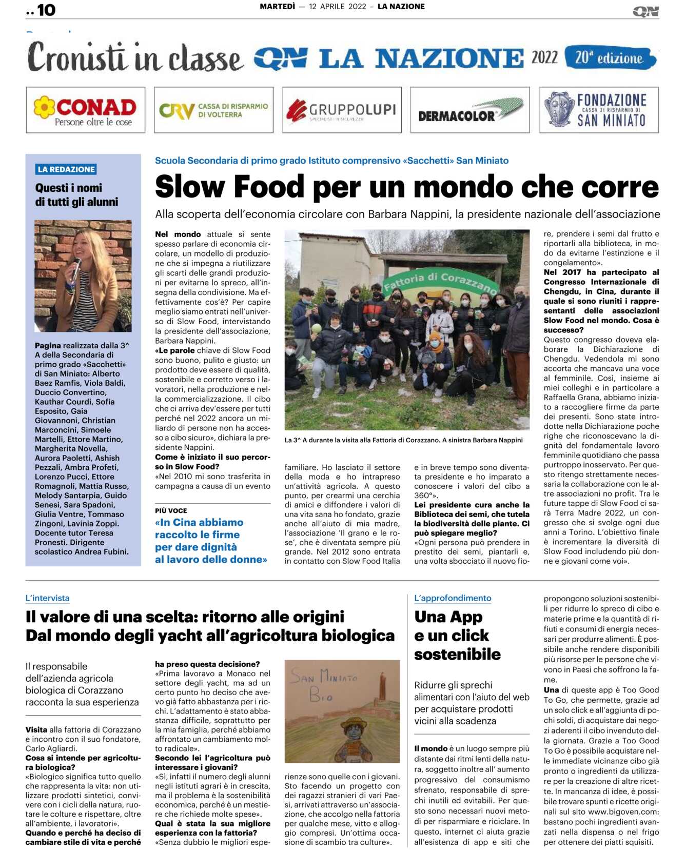 «Le parole chiave di Slow Food sono buono, pulito e giusto: un prodotto deve essere di qualità, sostenibile e corretto verso i lavoratori, nella produzione e nella commercializzazione. Il cibo che ci arriva dev’essere per tutti perché nel 2022 ancora un miliardo di persone non ha accesso a cibo sicuro», dichiara la presidente Nappini.