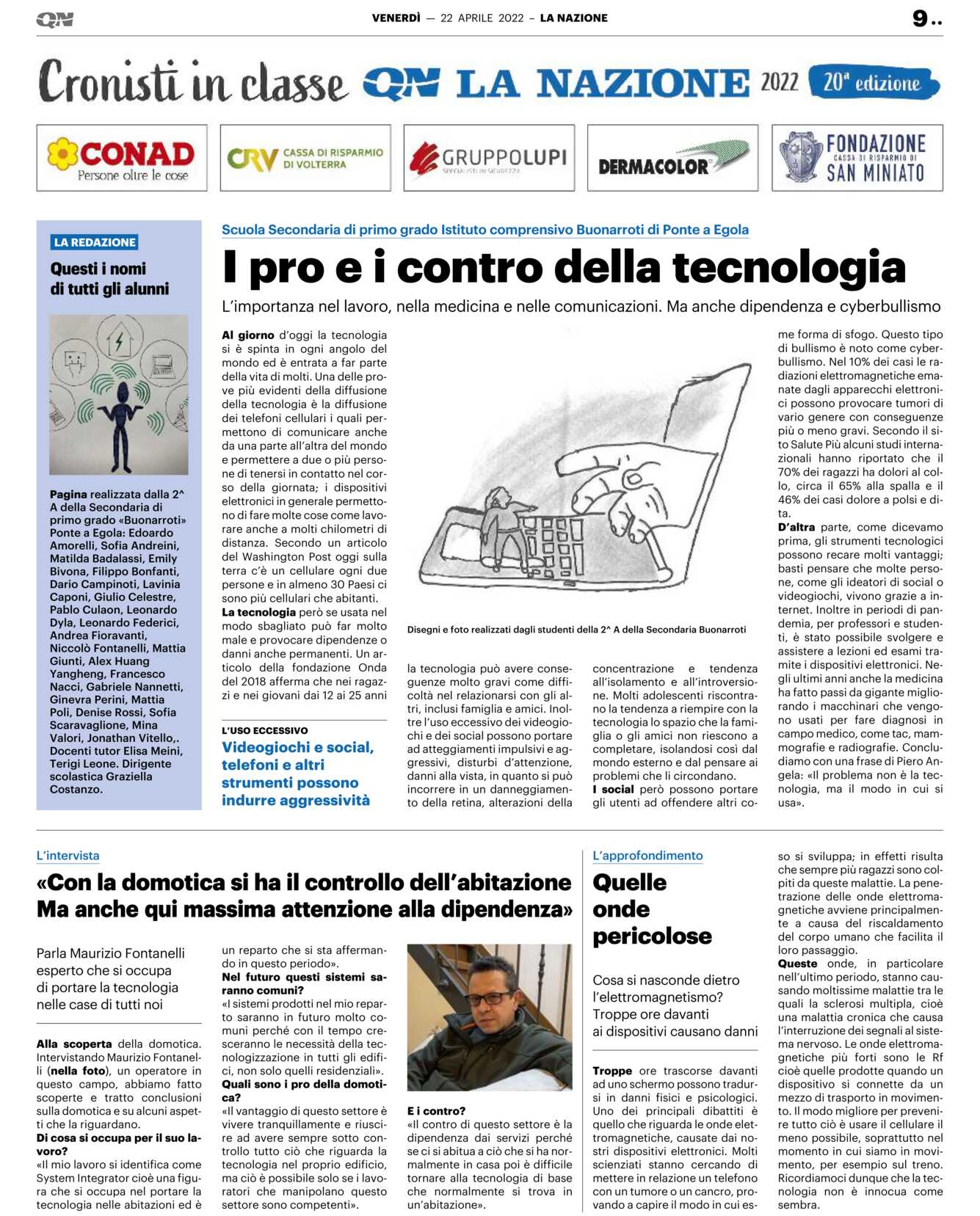 D’altra parte, come dicevamo prima, gli strumenti tecnologici possono recare molti vantaggi; basti pensare che molte persone, come gli ideatori di social o videogiochi, vivono grazie a internet. Inoltre in periodi di pandemia, per professori e studenti, è stato possibile svolgere e assistere a lezioni ed esami tramite i dispositivi elettronici. Negli ultimi anni anche la medicina ha fatto passi da gigante migliorando i macchinari che vengono usati per fare diagnosi in campo medico, come tac, mammografie e radiografie. Concludiamo con una frase di Piero Angela: «Il problema non è la tecnologia, ma il modo in cui si usa».