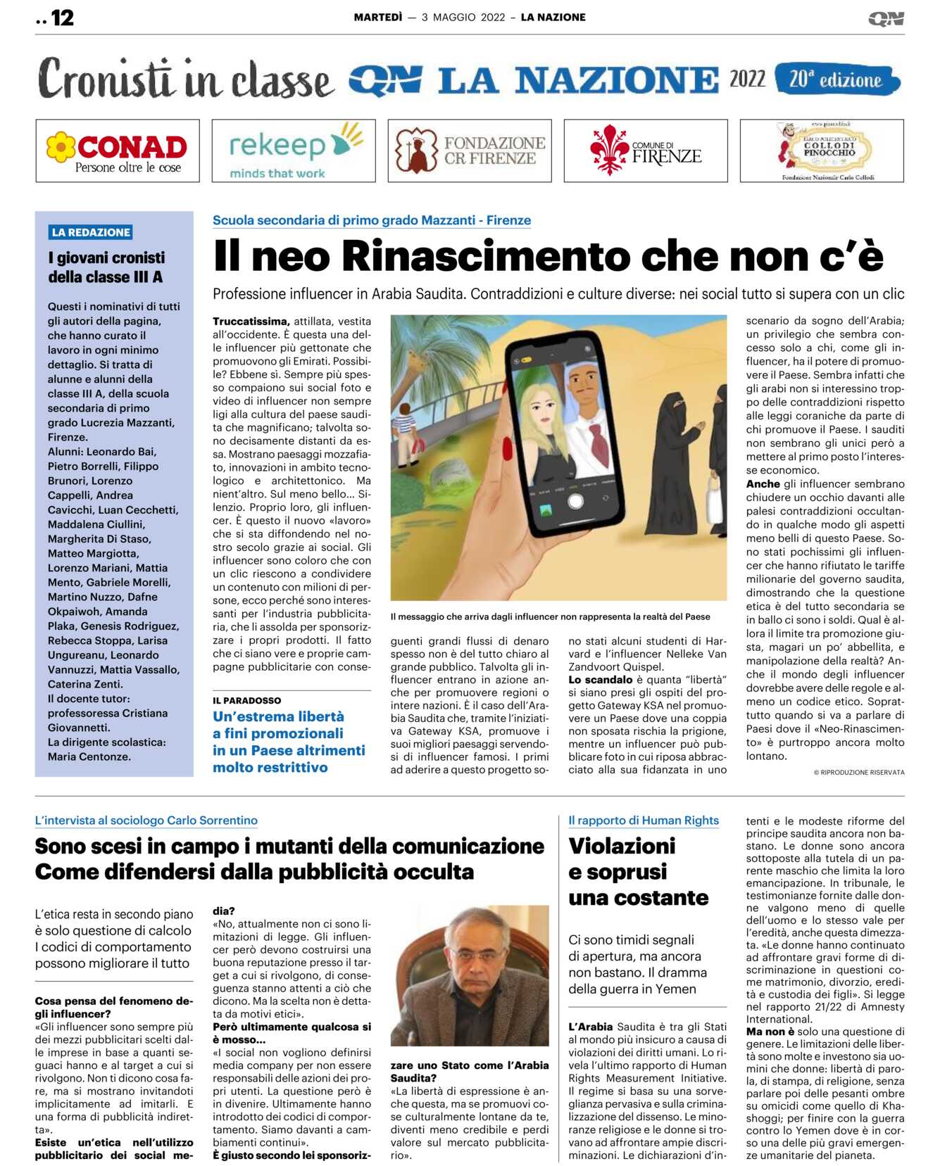 Anche gli influencer sembrano chiudere un occhio davanti alle palesi contraddizioni occultando in qualche modo gli aspetti meno belli di questo Paese. Sono stati pochissimi gli influencer che hanno rifiutato le tariffe milionarie del governo saudita, dimostrando che la questione etica è del tutto secondaria se in ballo ci sono i soldi. Qual è allora il limite tra promozione giusta, magari un po’ abbellita, e manipolazione della realtà? Anche il mondo degli influencer dovrebbe avere delle regole e almeno un codice etico. Soprattutto quando si va a parlare di Paesi dove il «Neo-Rinascimento» è purtroppo ancora molto lontano.