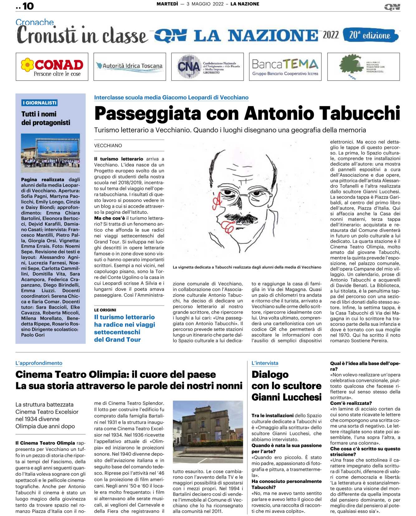 VECCHIANO Il turismo letterario arriva a Vecchiano. L’idea nasce da un Progetto europeo svolto da un gruppo di studenti della nostra scuola nel 2018/2019, incentrato sul tema del viaggio nell’opera tabucchiana. I risultati di questo lavoro si possono vedere in un blog a cui si accede attraverso la pagina dell’Istituto.
