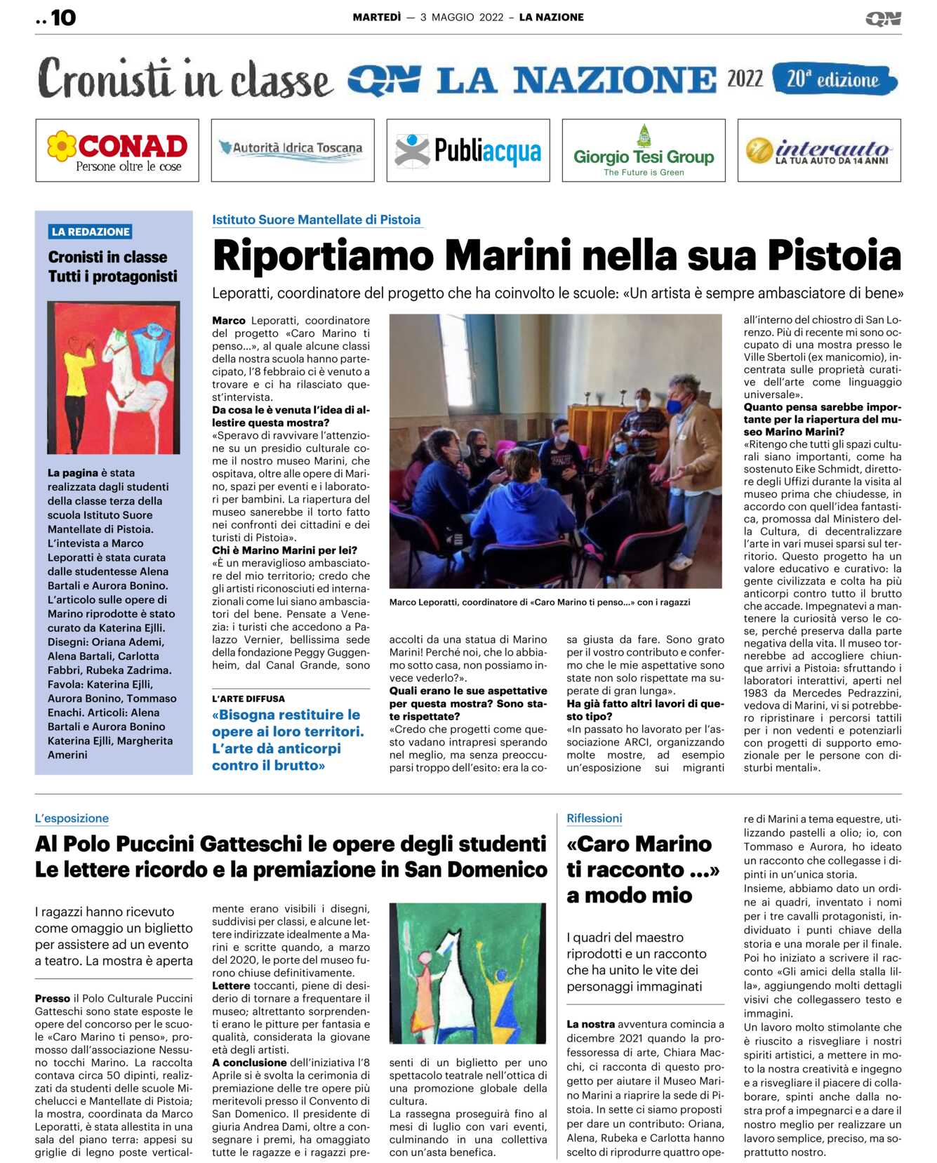 Marco Leporatti, coordinatore del progetto «Caro Marino ti penso…», al quale alcune classi della nostra scuola hanno partecipato, l’8 febbraio ci è venuto a trovare e ci ha rilasciato quest’intervista.