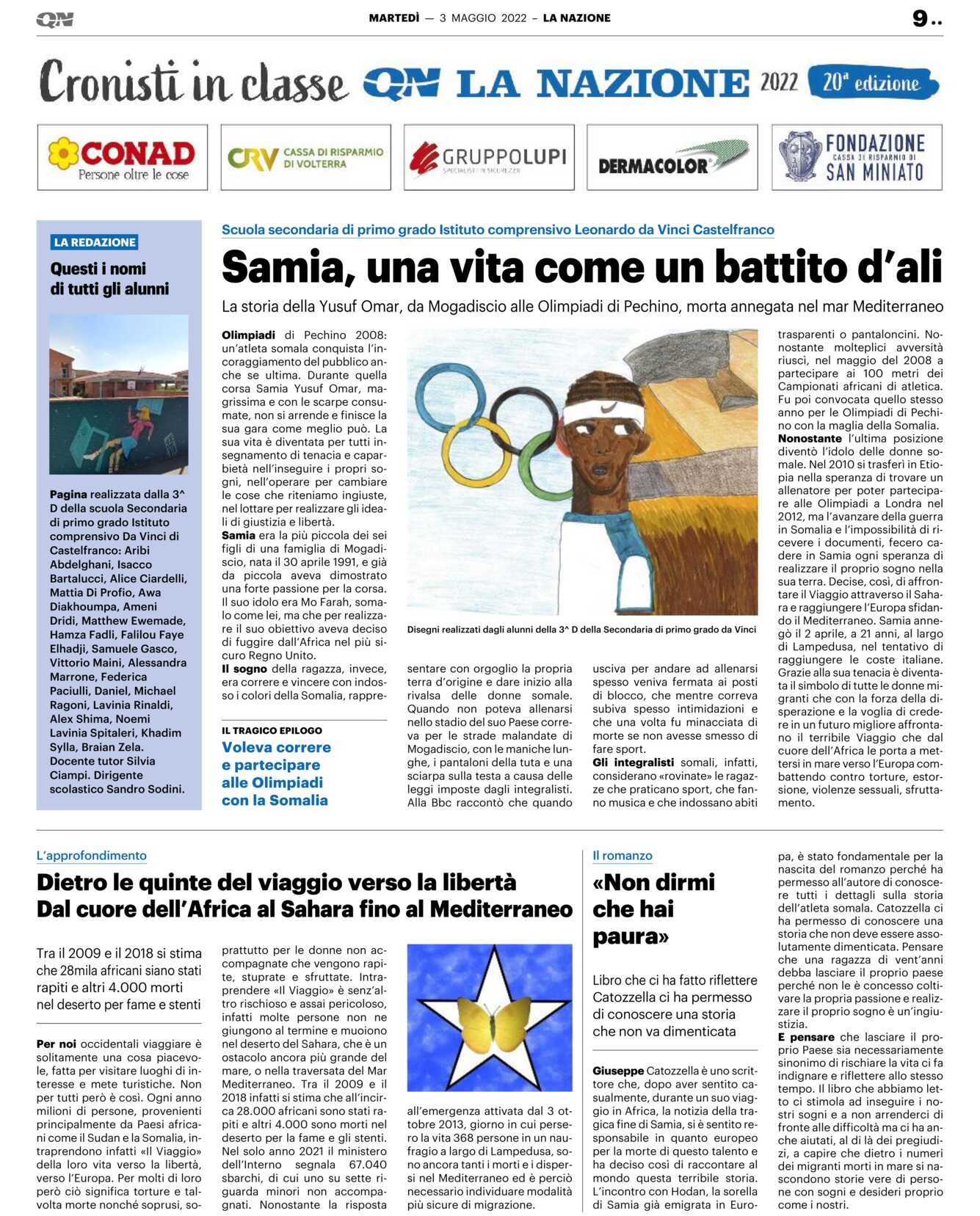 Olimpiadi di Pechino 2008: un’atleta somala conquista l’incoraggiamento del pubblico anche se ultima. Durante quella corsa Samia Yusuf Omar, magrissima e con le scarpe consumate, non si arrende e finisce la sua gara come meglio può. La sua vita è diventata per tutti insegnamento di tenacia e caparbietà nell’inseguire i propri sogni, nell’operare per cambiare le cose che riteniamo ingiuste, nel lottare per realizzare gli ideali di giustizia e libertà.