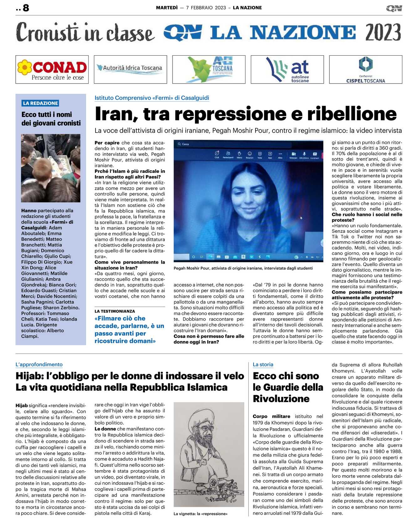 Come vive personalmente la situazione in Iran? «Da quattro mesi, ogni giorno, racconto quello che sta succedendo in Iran, soprattutto quello che accade nelle scuole e ai vostri coetanei, che non hannoaccesso a internet, che non possono uscire per strada senza rischiare di essere colpiti da una pallottola o da una manganellata. Sono situazioni molto difficili ma che devono essere raccontate. Dobbiamo raccontare per aiutare i giovani che dovranno ricostruire l’Iran domani».