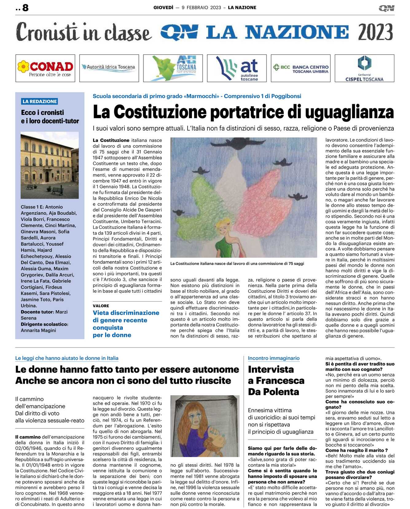 Non esistono più distinzioni in base al titolo nobiliare, al grado o all’appartenenza ad una classe sociale. Lo Stato non deve quindi effettuare discriminazioni tra i cittadini. Secondo noi questo è un articolo molto importante della nostra Costituzione perché spiega che l’Italia non fa distinzioni di sesso, razza, religione o paese di provenienza. Nella parte prima della Costituzione Diritti e doveri dei cittadini, al titolo 3 troviamo anche qui un articolo molto importante per i cittadini,in particolare per le donne l’ articolo 37. In questo articolo si parla della donna lavoratrice ha gli stessi diritti e, a parità di lavoro, le stesse retribuzioni che spettano al lavoratore. Le condizioni di lavoro devono consentire l’adempimento della sua essenziale funzione familiare e assicurare alla madre e al bambino una speciale ed adeguata protezione. Anche questa è una legge importante per la parità di genere, perché non è una cosa giusta licenziare una donna solo perché ha voluto dare al mondo un bambino, o magari anche far lavorare le donne allo stesso tempo degli uomini e dargli la metà del loro stipendio. Secondo noi è una cosa veramente ingiusta, infatti questa legge ha la funzione di non far succedere queste cose; anche se in molte parti del Mondo la disuguaglianza esiste ancora. A volte dobbiamo pensare a quanto siamo fortunati a vivere in Italia, perché in moltissimi paesi del mondo le donne non hanno molti diritti e vige la discriminazione di genere. Quelle che soffrono di più sono sicuramente le donne, che in paesi dell’Africa e dell’Asia, sono considerate stracci e non hanno nessun diritto. Anche prima che noi nascessimo le donne in Italia avevano pochi diritti. Quindi dobbiamo solo dire grazie a quelle donne e a quegli uomini che hanno reso possibile l’uguaglianza di genere.