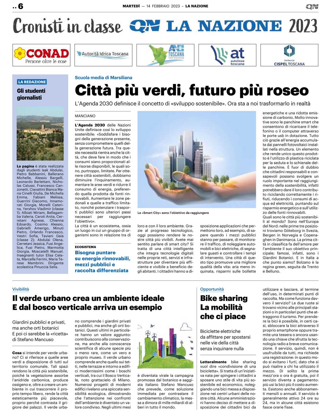 MANCIANO L’Agenda 2030 delle Nazioni Unite definisce così lo sviluppo sostenibile: «Soddisfare i bisogni della generazione presente, senza compromettere quelli della generazione futura. Tra queste necessità rientra anche la città, che deve fare in modo che i consumi siano proporzionati alle risorse disponibili, le quali sono, purtroppo, limitate. Per ottenere città sostenibili, dobbiamo diminuire l’inquinamento, aumentare le aree verdi e ridurre il consumo di energia, preferendo quella prodotta da fonti rinnovabili. Aumentare le zone pedonali e quelle a traffico limitato, nonché potenziare i trasporti pubblici sono ulteriori passi necessari per raggiungere l’obiettivo».