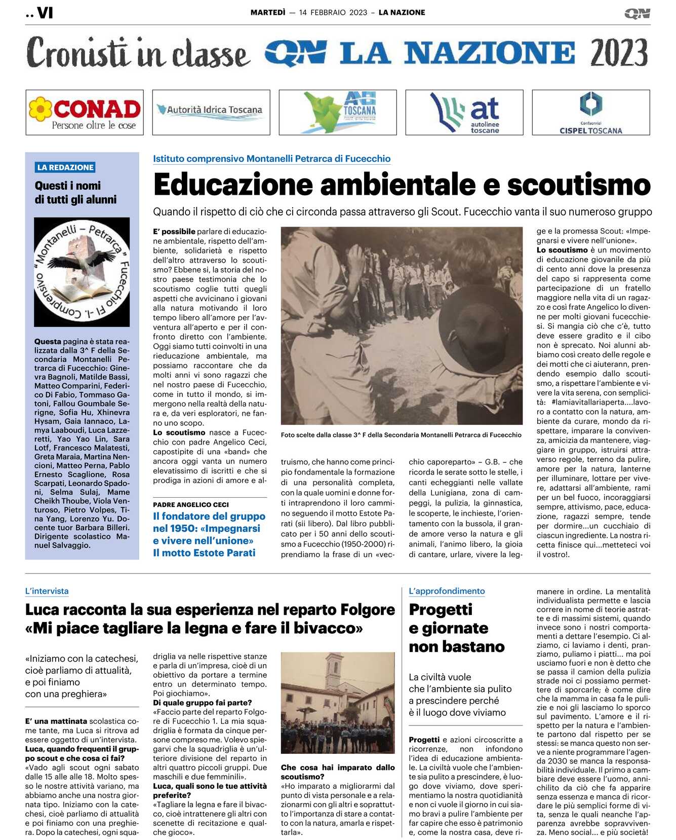 Lo scoutismo è un movimento di educazione giovanile da più di cento anni dove la presenza del capo si rappresenta come partecipazione di un fratello maggiore nella vita di un ragazzo e così frate Angelico lo divenne per molti giovani fucecchiesi. Si mangia ciò che c’è, tutto deve essere gradito e il cibo non è sprecato. Noi alunni abbiamo così creato delle regole e dei motti che ci aiuteranno, prendendo esempio dallo scoutismo, a rispettare l’ambiente e vivere la vita serena, con semplicità: #lamiavitallariaperta….lavoro a contatto con la natura, ambiente da curare, mondo da rispettare, imparare la convivenza, amicizia da mantenere, viaggiare in gruppo, istruirsi attraverso regole, terreno da pulire, amore per la natura, lanterne per illuminare, lottare per vivere, adattarsi all’ambiente, rami per un bel fuoco, incoraggiarsi sempre, attivismo, pace, educazione, ragazzi sempre, tende per dormire…un cucchiaio di ciascun ingrediente. La nostra ricetta finisce qui…metteteci voi il vostro!.