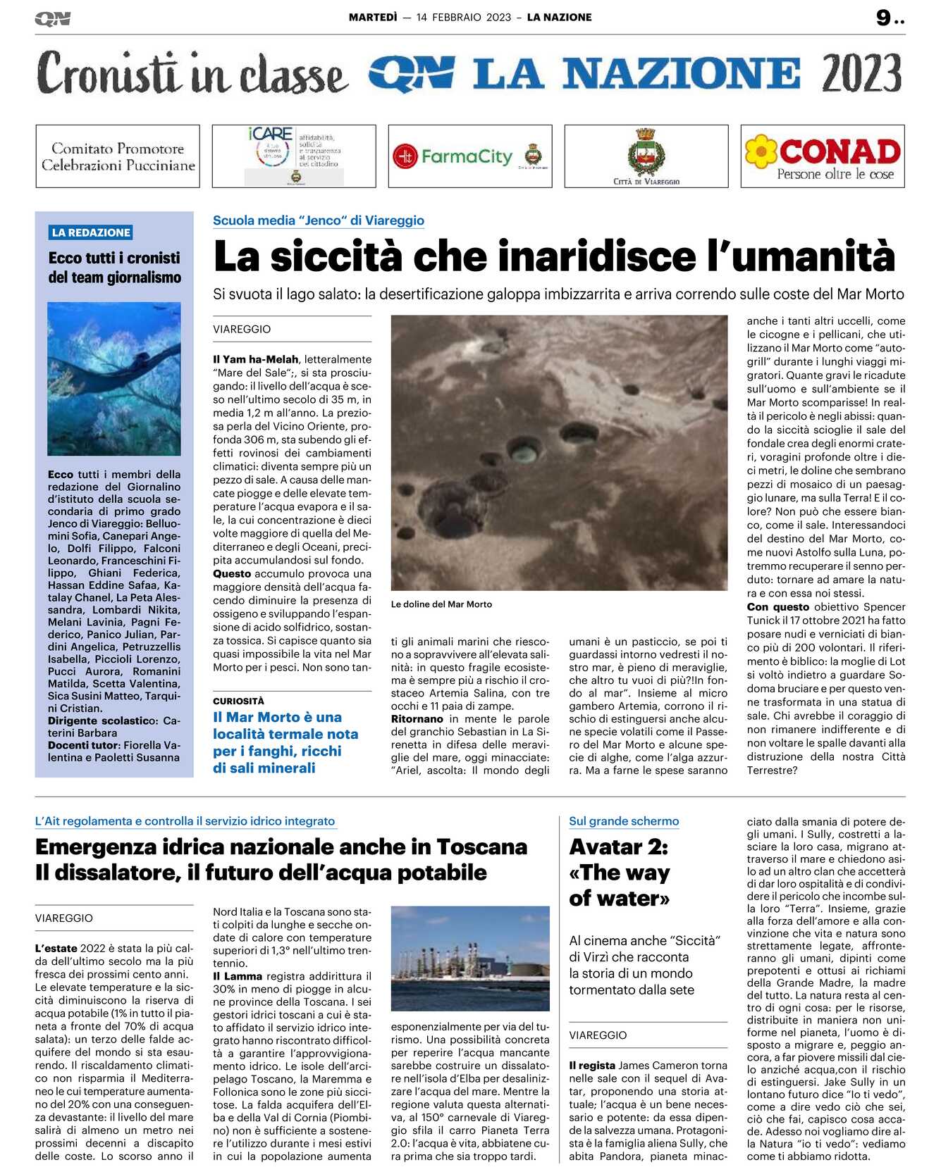 VIAREGGIO Il Yam ha-Melah, letteralmente “Mare del Sale“;, si sta prosciugando: il livello dell’acqua è sceso nell’ultimo secolo di 35 m, in media 1,2 m all’anno. La preziosa perla del Vicino Oriente, profonda 306 m, sta subendo gli effetti rovinosi dei cambiamenti climatici: diventa sempre più un pezzo di sale. A causa delle mancate piogge e delle elevate temperature l’acqua evapora e il sale, la cui concentrazione è dieci volte maggiore di quella del Mediterraneo e degli Oceani, precipita accumulandosi sul fondo.