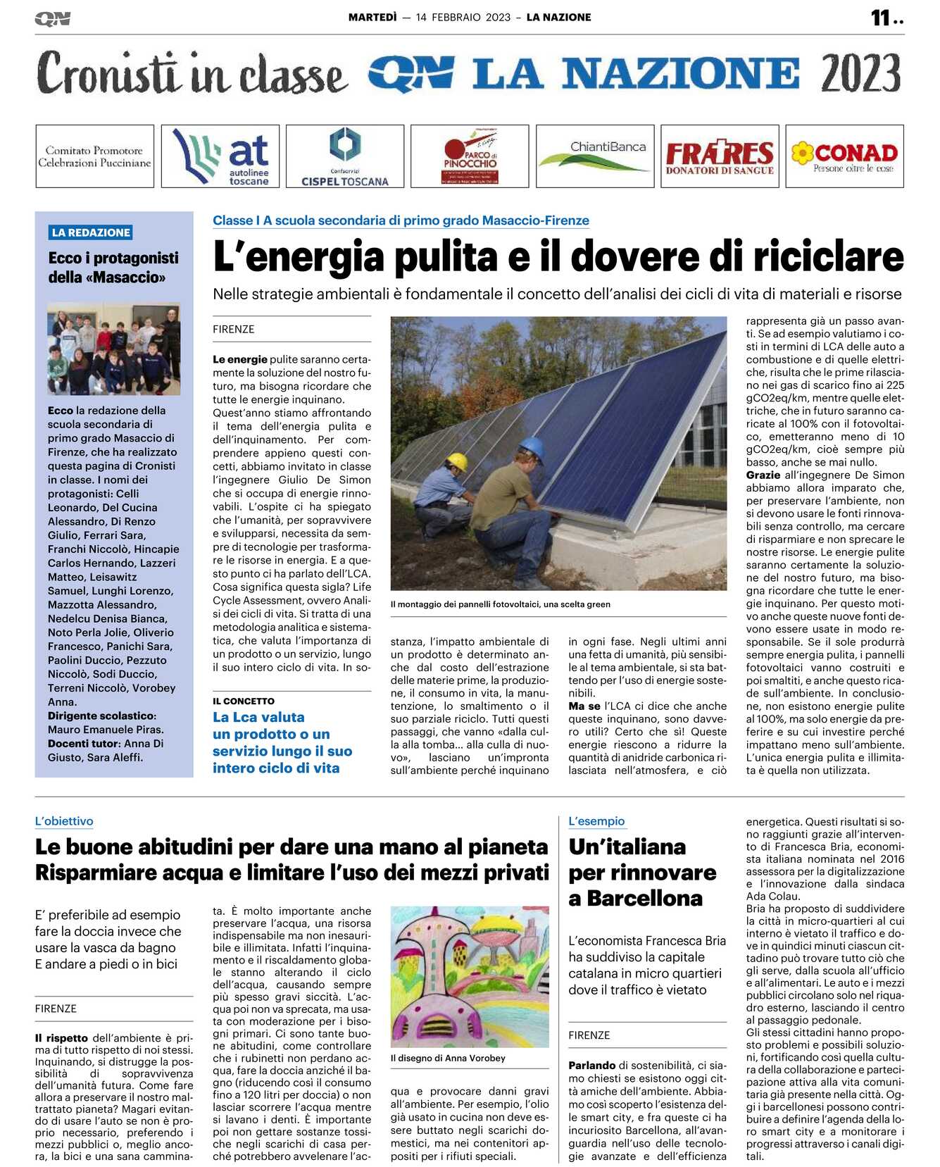 Quest’anno stiamo affrontando il tema dell’energia pulita e dell’inquinamento. Per comprendere appieno questi concetti, abbiamo invitato in classe l’ingegnere Giulio De Simon che si occupa di energie rinnovabili. L’ospite ci ha spiegato che l’umanità, per sopravvivere e svilupparsi, necessita da sempre di tecnologie per trasformare le risorse in energia. E a questo punto ci ha parlato dell’LCA.
