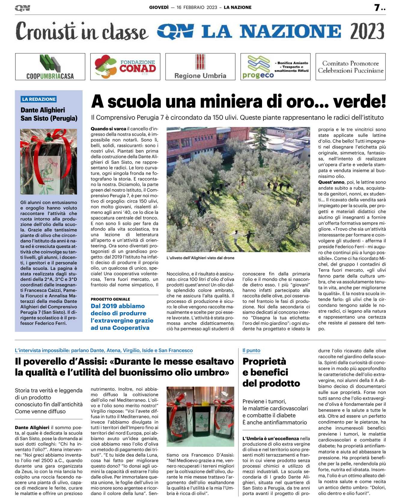 Quest’anno, poi, le lattine sono andate subito a ruba, acquistate da genitori, nonni, ex studenti… Il ricavato della vendita sarà impiegato per la scuola, per progetti e materiali didattici che aiutino gli insegnanti a fornire un’offerta formativa sempre migliore. «Trovo che sia un’attività interessante per formare e coinvolgere gli studenti – afferma il preside Federico Ferri – mi auguro che continui più a lungo possibile». Come ci ha ricordato Michel, del gruppo I contadini di Terra fuori mercato, «gli ulivi fanno parte della cultura umbra, che va assolutamente tenuta in vita, anche per migliorarne la qualità». E la nostra scuola intende farlo: gli ulivi che la circondano tengono salde le nostre radici, ci legano alla natura e rappresentano una certezza che resiste al passare del tempo.