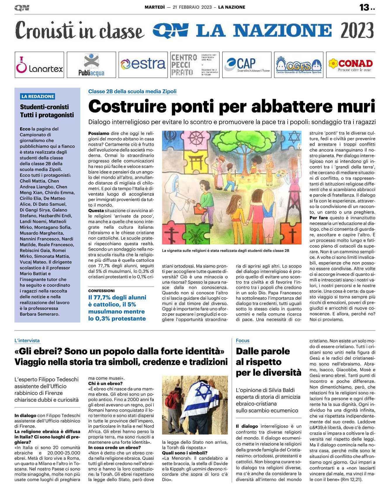 Questa situazione ci avvicina alle religioni ’arrivate da poco’, ma anche a quelle che sono integrate nella cultura italiana: l’ebraismo e le chiese cristiane non cattoliche. Le scuole pratesi rispecchiano questa realtà.