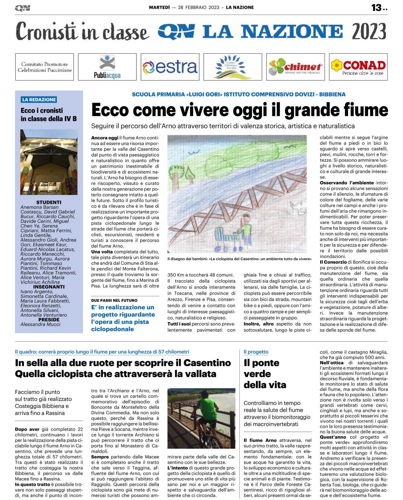 Ancora oggi il fiume Arno continua ad essere una risorsa importante per la valle del Casentino dal punto di vista paesaggistico e naturalistico in quanto offre un patrimonio inestimabile di biodiversità e di ecosistemi naturali. L’Arno ha bisogno di essere riscoperto, vissuto e curato dalla nostra generazione per poterlo consegnare intatto a quelle future. Sotto il profilo turistico è da rilevare che è in fase di realizzazione un importante progetto riguardante l’opera di una pista ciclopedonale lungo le strade del fiume che porterà ciclisti, escursionisti, residenti e turisti a conoscere il percorso del fiume Arno.