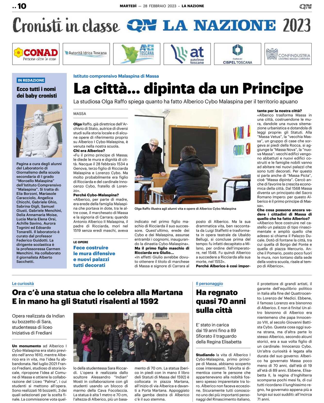 Olga Raffo, già direttrice dell’Archivio di Stato, autrice di diversi studi sulla storia locale e di alcune opere di riferimento proprio su Alberico I Cybo-Malaspina, è venuta nella nostra scuola.