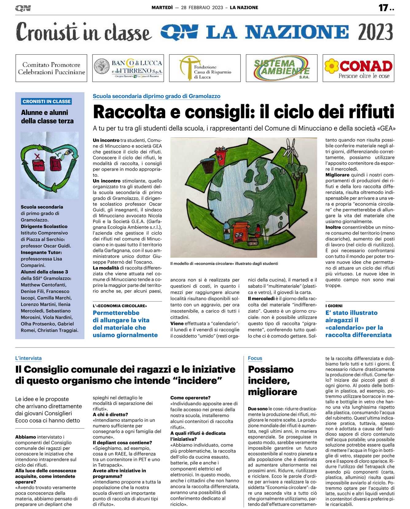 Un incontro stimolante, quello organizzato tra gli studenti della scuola secondaria di primo grado di Gramolazzo, il dirigente scolastico professor Oscar Guidi, gli insegnanti, il sindaco di Minucciano avvocato Nicola Poli e la Società G.E.A. (Garfagnana Ecologia Ambiente s.r.l.), l’azienda che gestisce il ciclo dei rifiuti nel comune di Minucciano e in quasi tutto il territorio della Garfagnana, con il suo amministratore unico dottor Giuseppe Paternò del Toscano.