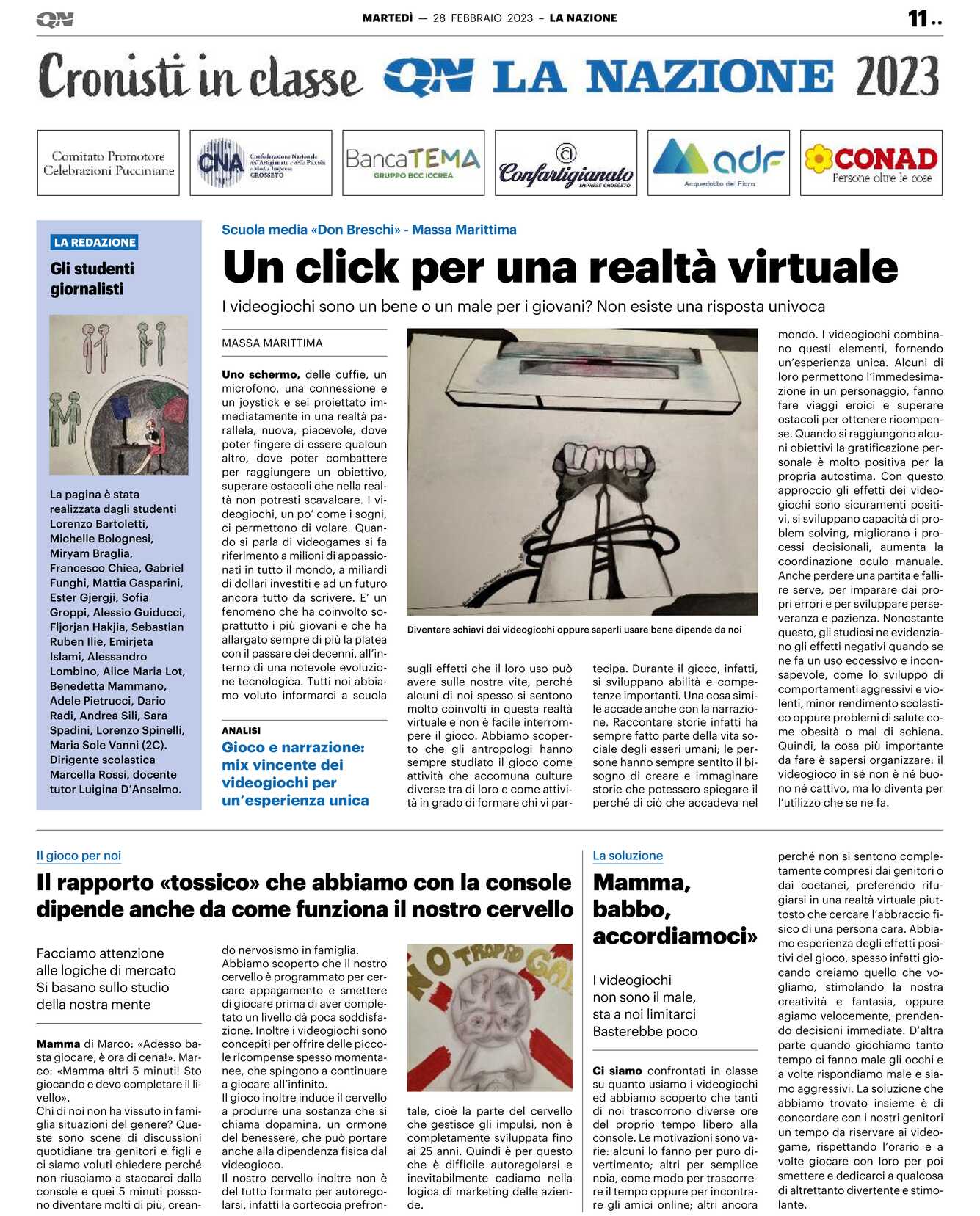 Uno schermo, delle cuffie, un microfono, una connessione e un joystick e sei proiettato immediatamente in una realtà parallela, nuova, piacevole, dove poter fingere di essere qualcun altro, dove poter combattere per raggiungere un obiettivo, superare ostacoli che nella realtà non potresti scavalcare. I videogiochi, un po’ come i sogni, ci permettono di volare. Quando si parla di videogames si fa riferimento a milioni di appassionati in tutto il mondo, a miliardi di dollari investiti e ad un futuro ancora tutto da scrivere. E’ un fenomeno che ha coinvolto soprattutto i più giovani e che ha allargato sempre di più la platea con il passare dei decenni, all’interno di una notevole evoluzione tecnologica. Tutti noi abbiamo voluto informarci a scuola sugli effetti che il loro uso può avere sulle nostre vite, perché alcuni di noi spesso si sentono molto coinvolti in questa realtà virtuale e non è facile interrompere il gioco. Abbiamo scoperto che gli antropologi hanno sempre studiato il gioco come attività che accomuna culture diverse tra di loro e come attività in grado di formare chi vi partecipa. Durante il gioco, infatti, si sviluppano abilità e competenze importanti. Una cosa simile accade anche con la narrazione. Raccontare storie infatti ha sempre fatto parte della vita sociale degli esseri umani; le persone hanno sempre sentito il bisogno di creare e immaginare storie che potessero spiegare il perché di ciò che accadeva nel mondo. I videogiochi combinano questi elementi, fornendo un’esperienza unica. Alcuni di loro permettono l’immedesimazione in un personaggio, fanno fare viaggi eroici e superare ostacoli per ottenere ricompense. Quando si raggiungono alcuni obiettivi la gratificazione personale è molto positiva per la propria autostima. Con questo approccio gli effetti dei videogiochi sono sicuramenti positivi, si sviluppano capacità di problem solving, migliorano i processi decisionali, aumenta la coordinazione oculo manuale.