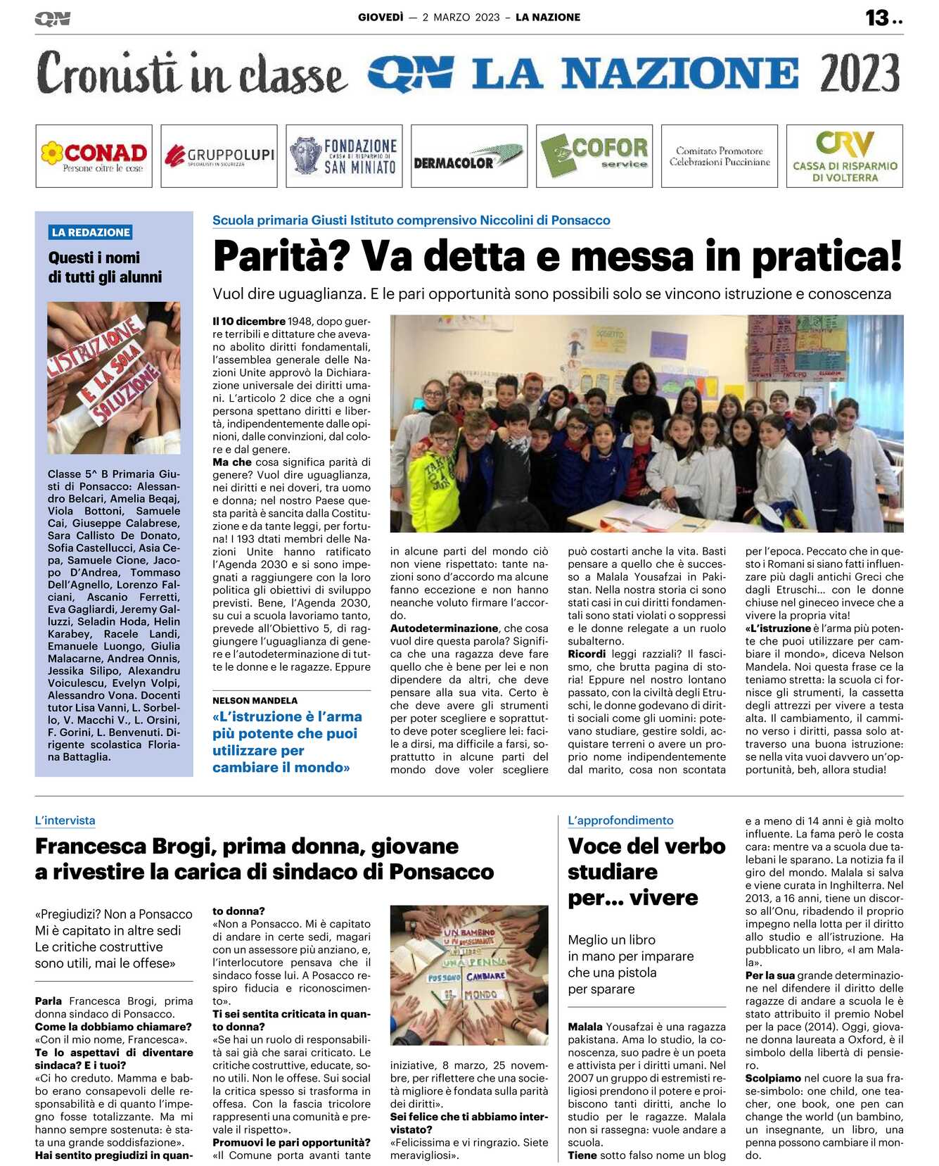 Ricordi leggi razziali? Il fascismo, che brutta pagina di storia! Eppure nel nostro lontano passato, con la civiltà degli Etruschi, le donne godevano di diritti sociali come gli uomini: potevano studiare, gestire soldi, acquistare terreni o avere un proprio nome indipendentemente dal marito, cosa non scontata per l’epoca. Peccato che in questo i Romani si siano fatti influenzare più dagli antichi Greci che dagli Etruschi… con le donne chiuse nel gineceo invece che a vivere la propria vita! «L’istruzione è l’arma più potente che puoi utilizzare per cambiare il mondo», diceva Nelson Mandela. Noi questa frase ce la teniamo stretta: la scuola ci fornisce gli strumenti, la cassetta degli attrezzi per vivere a testa alta. Il cambiamento, il cammino verso i diritti, passa solo attraverso una buona istruzione: se nella vita vuoi davvero un’opportunità, beh, allora studia!