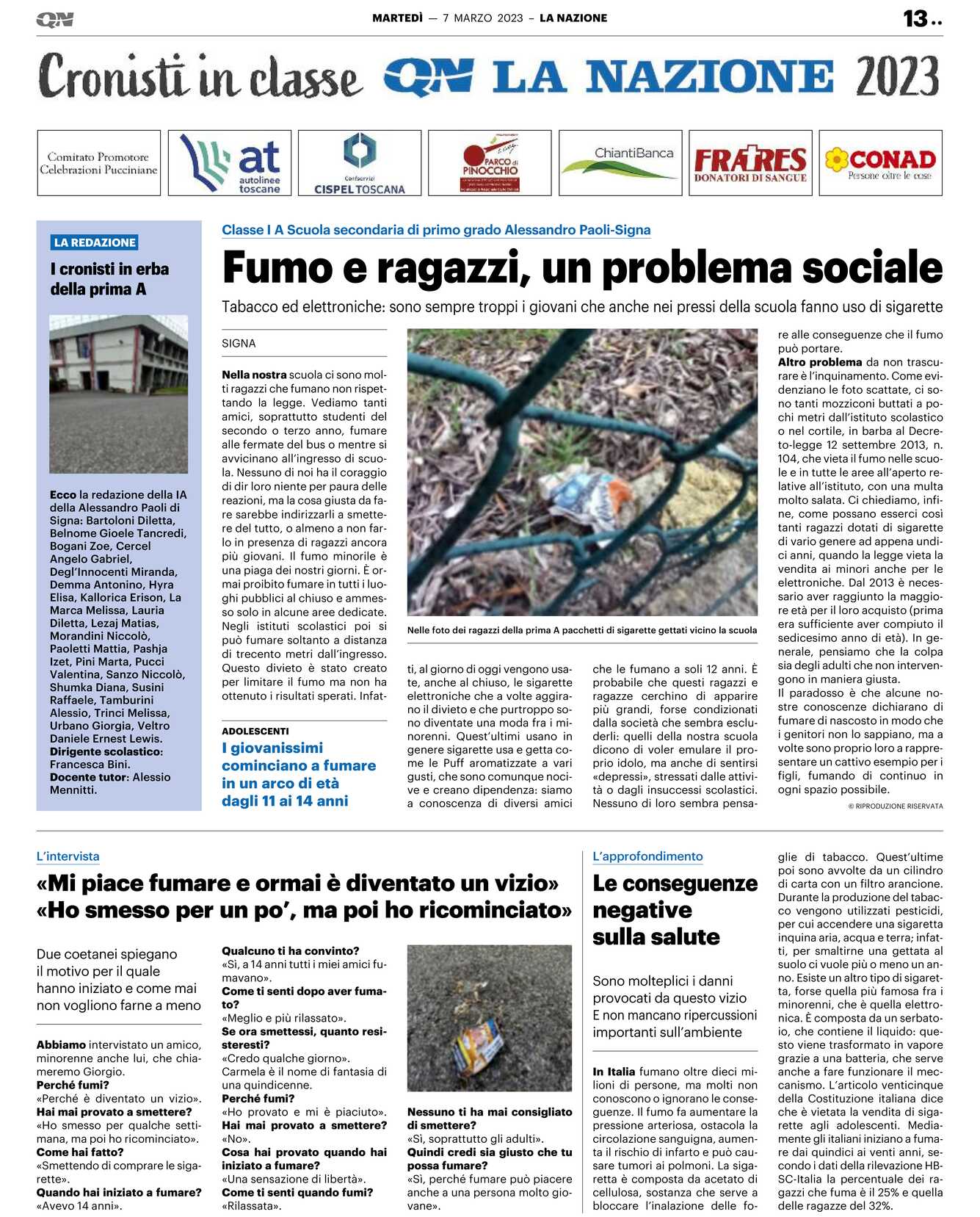 104, che vieta il fumo nelle scuole e in tutte le aree all’aperto relative all’istituto, con una multa molto salata. Ci chiediamo, infine, come possano esserci così tanti ragazzi dotati di sigarette di vario genere ad appena undici anni, quando la legge vieta la vendita ai minori anche per le elettroniche. Dal 2013 è necessario aver raggiunto la maggiore età per il loro acquisto (prima era sufficiente aver compiuto il sedicesimo anno di età). In generale, pensiamo che la colpa sia degli adulti che non intervengono in maniera giusta.