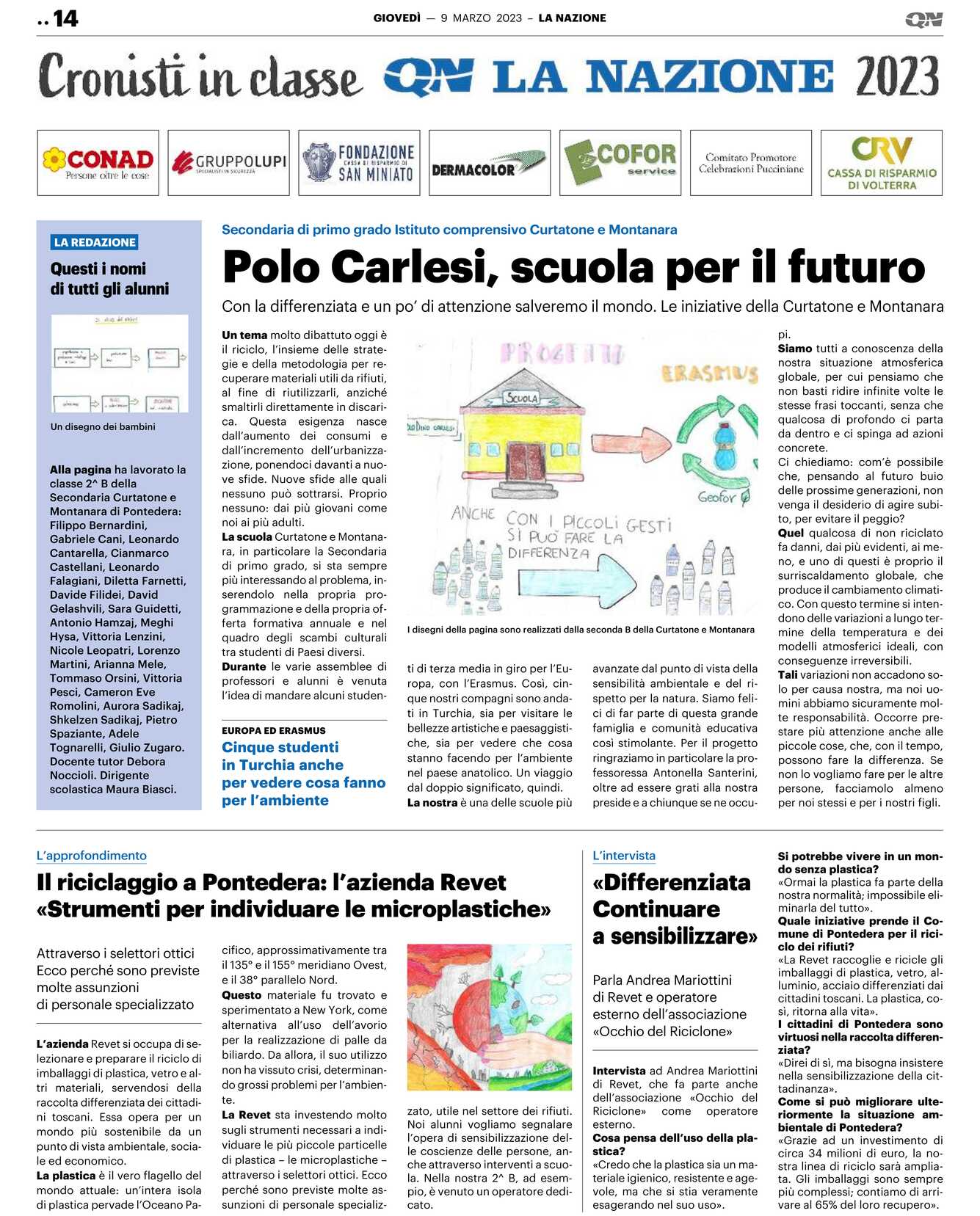 La nostra è una delle scuole più avanzate dal punto di vista della sensibilità ambientale e del rispetto per la natura. Siamo felici di far parte di questa grande famiglia e comunità educativa così stimolante. Per il progetto ringraziamo in particolare la professoressa Antonella Santerini, oltre ad essere grati alla nostra preside e a chiunque se ne occupi.