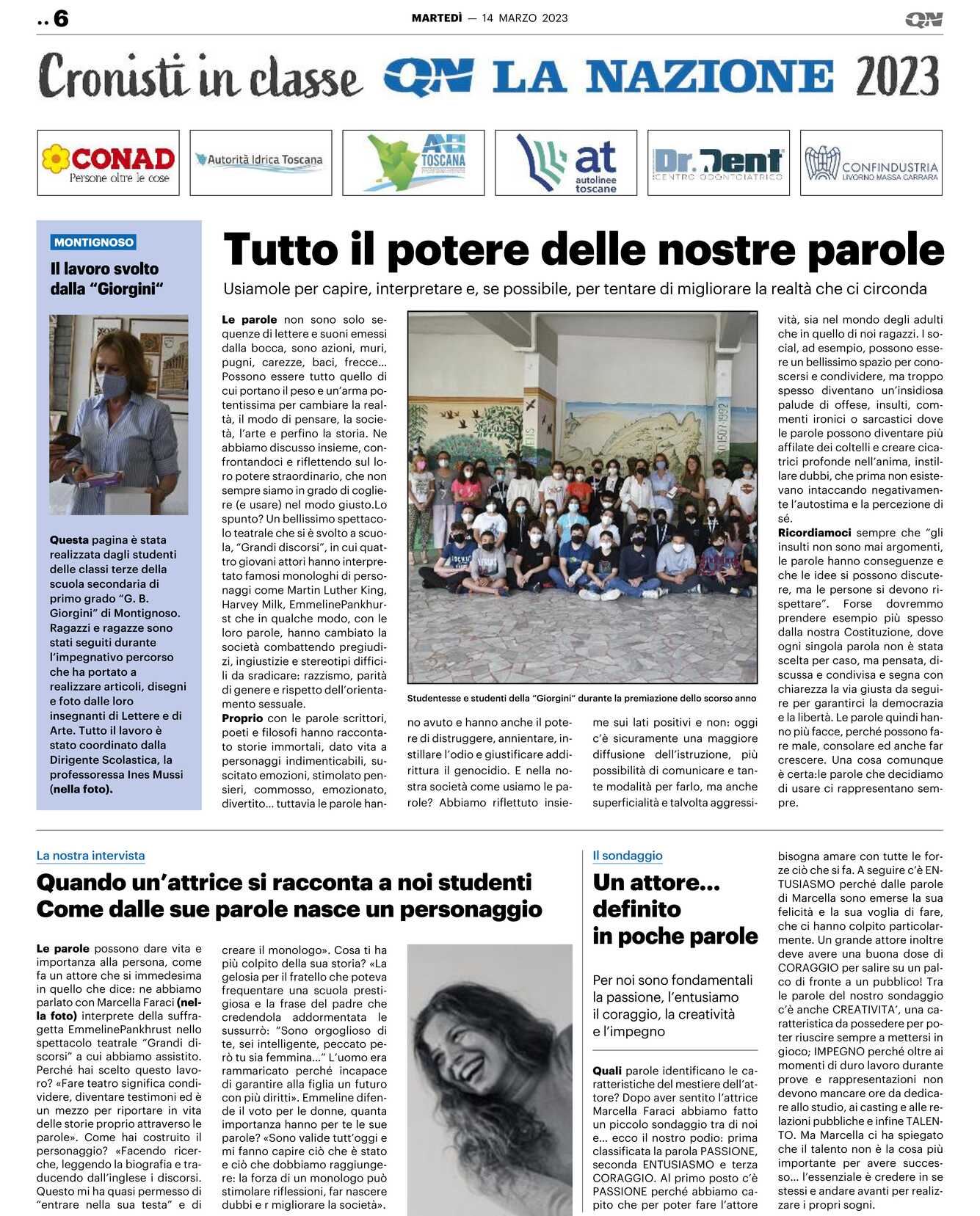 Le parole non sono solo sequenze di lettere e suoni emessi dalla bocca, sono azioni, muri, pugni, carezze, baci, frecce… Possono essere tutto quello di cui portano il peso e un’arma potentissima per cambiare la realtà, il modo di pensare, la società, l’arte e perfino la storia. Ne abbiamo discusso insieme, confrontandoci e riflettendo sul loro potere straordinario, che non sempre siamo in grado di cogliere (e usare) nel modo giusto. Lo spunto? Un bellissimo spettacolo teatrale che si è svolto a scuola, “Grandi discorsi”, in cui quattro giovani attori hanno interpretato famosi monologhi di personaggi come Martin Luther King, Harvey Milk, Emmeline Pankhurst che in qualche modo, con le loro parole, hanno cambiato la società combattendo pregiudizi, ingiustizie e stereotipi difficili da sradicare: razzismo, parità di genere e rispetto dell’orientamento sessuale.