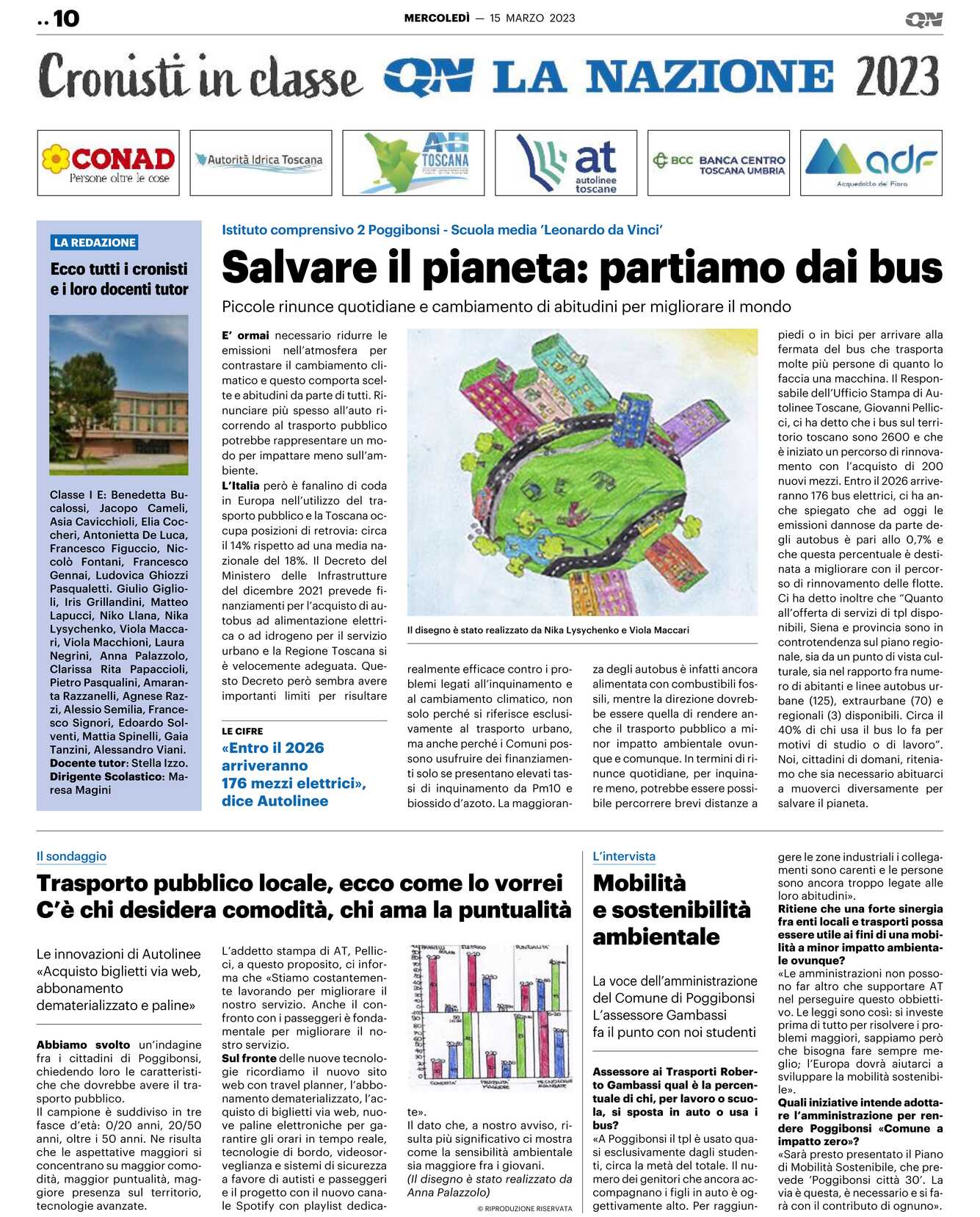 Quali iniziative intende adottare l’amministrazione per rendere Poggibonsi «Comune a impatto zero»? «Sarà presto presentato il Piano di Mobilità Sostenibile, che prevede ’Poggibonsi città 30’. La via è questa, è necessario e si farà con il contributo di ognuno». LA REDAZIONE Classe I E: Benedetta Bucalossi, Jacopo Cameli, Asia Cavicchioli, Elia Coccheri, Antonietta De Luca, Francesco Figuccio, Niccolò Fontani, Francesco Gennai, Ludovica Ghiozzi Pasqualetti. Giulio Giglioli, Iris Grillandini, Matteo Lapucci, Niko Llana, Nika Lysychenko, Viola Maccari, Viola Macchioni, Laura Negrini, Anna Palazzolo, Clarissa Rita Papaccioli, Pietro Pasqualini, Amaranta Razzanelli, Agnese Razzi, Alessio Semilia, Francesco Signori, Edoardo Solventi, Mattia Spinelli, Gaia Tanzini, Alessandro Viani.